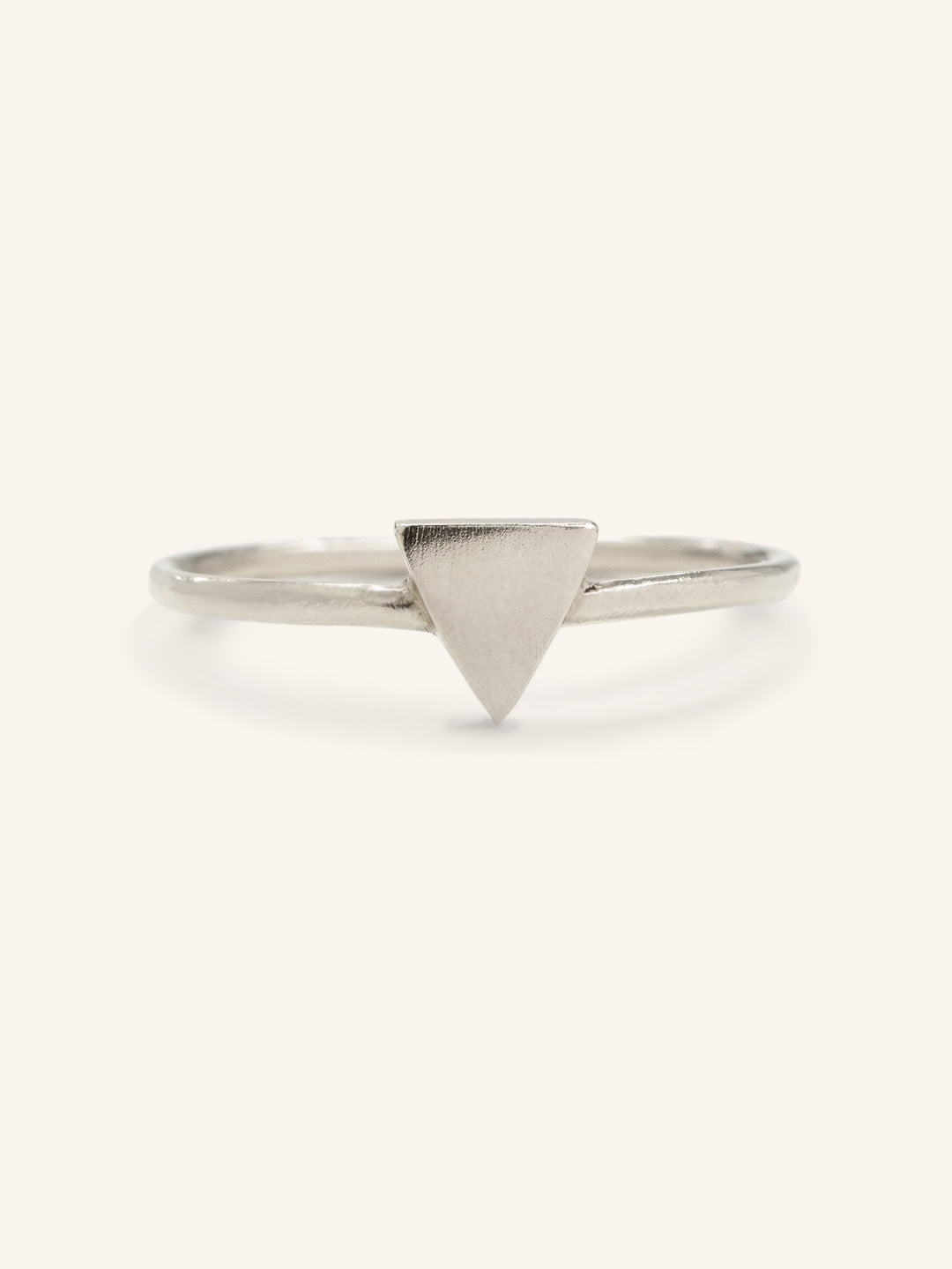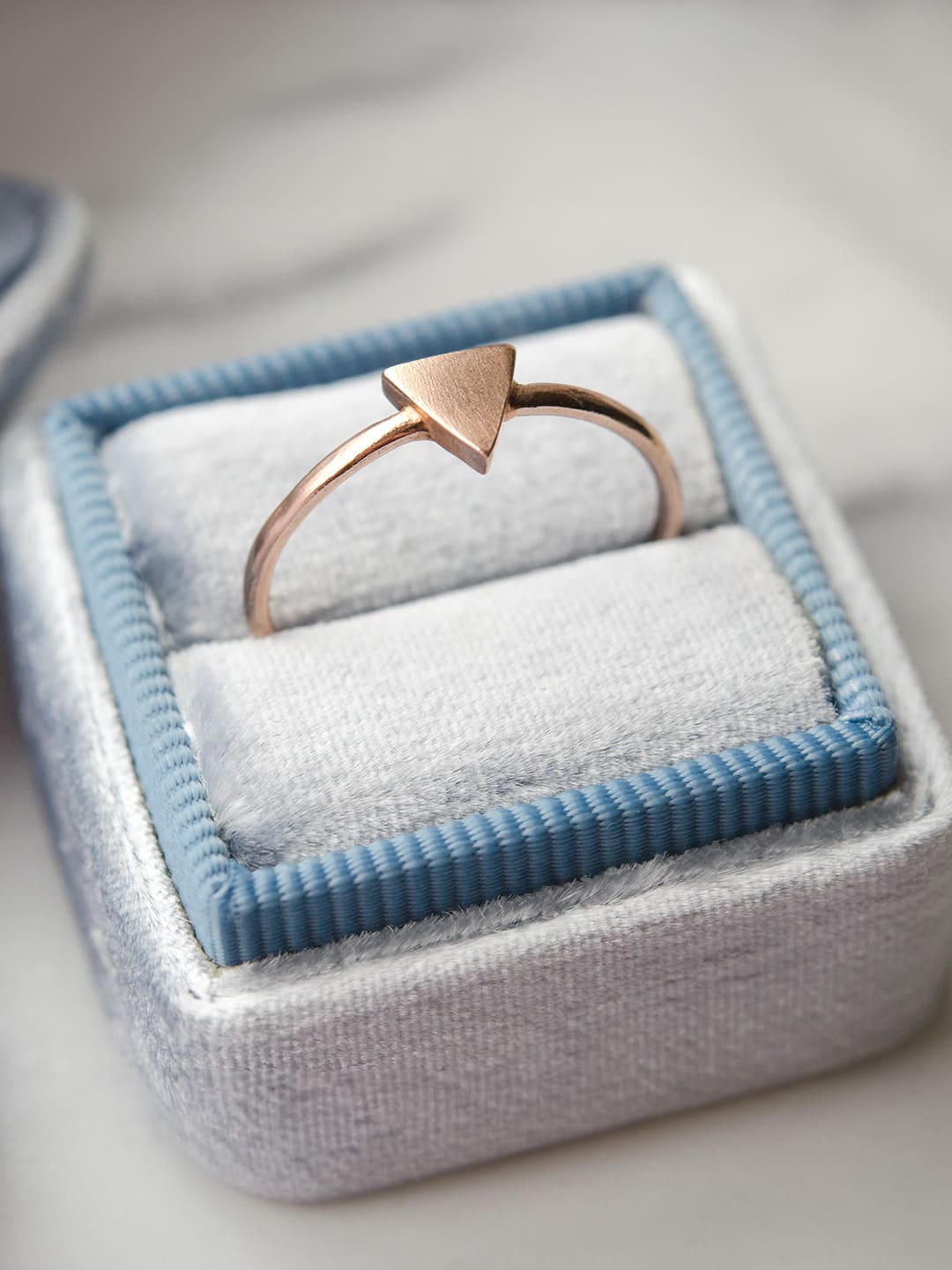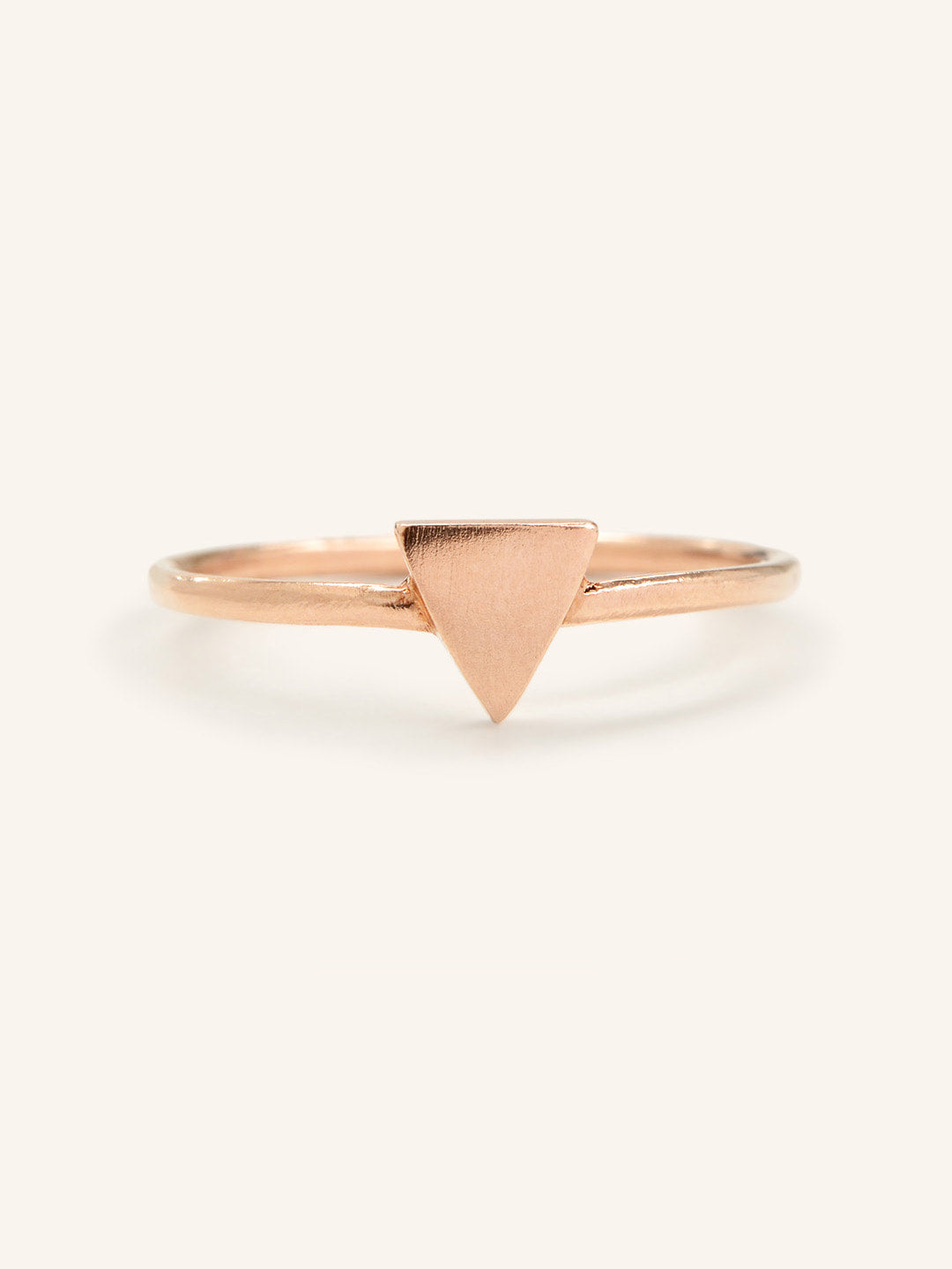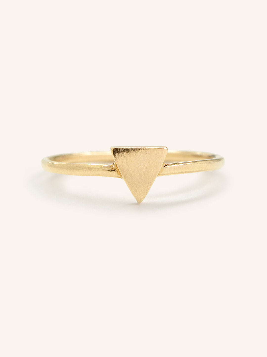Let your style shine with this charming gold triangle ring. Crafted with a unique triangular shape, this engravable ring is the perfect accessory to add a touch of sophistication and glamour to your look.