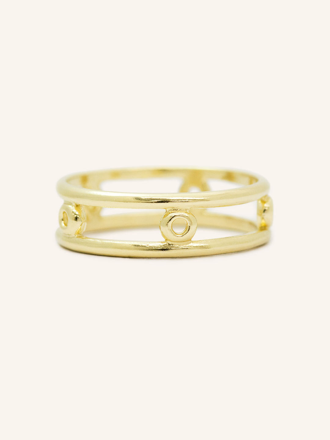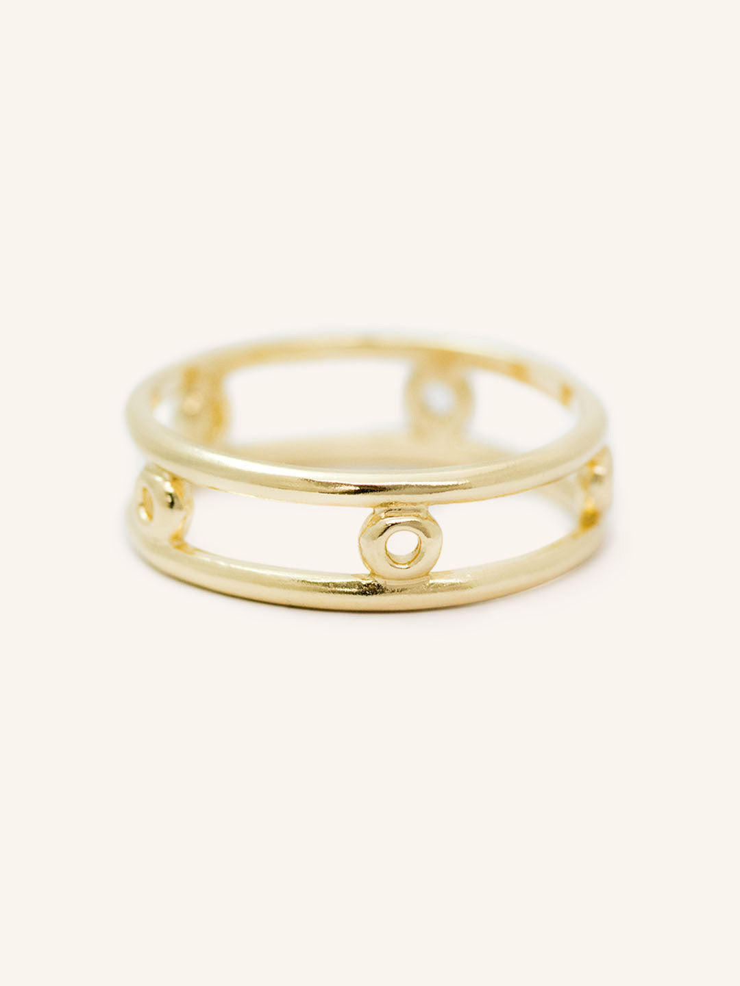 Take a journey through your brightly colored dreams with this piece. The Journey By Dream Ring is a solid 14K gold band that is made to be minimal and dainty. It is crafted with circle bezels to add to your ring stack or wear just on its own.