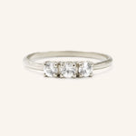 A mariposa is meant to symbolize the beautiful transformation of life. Allow the Mariposa White Sapphire Lily Ring to embody this stunning ring with 3 minimal white sapphires. It's a beautiful representation of life and the change everyone hopes for.