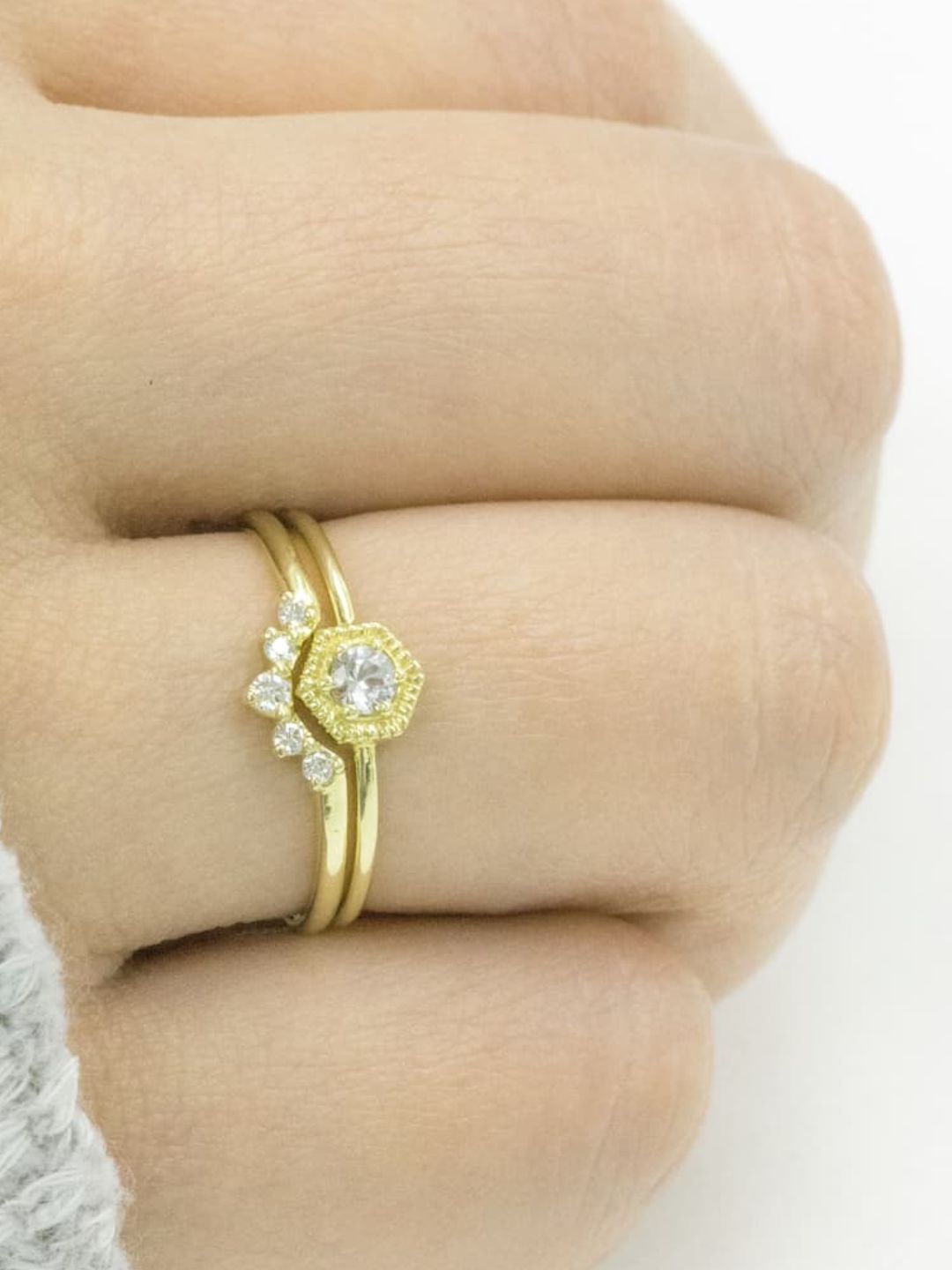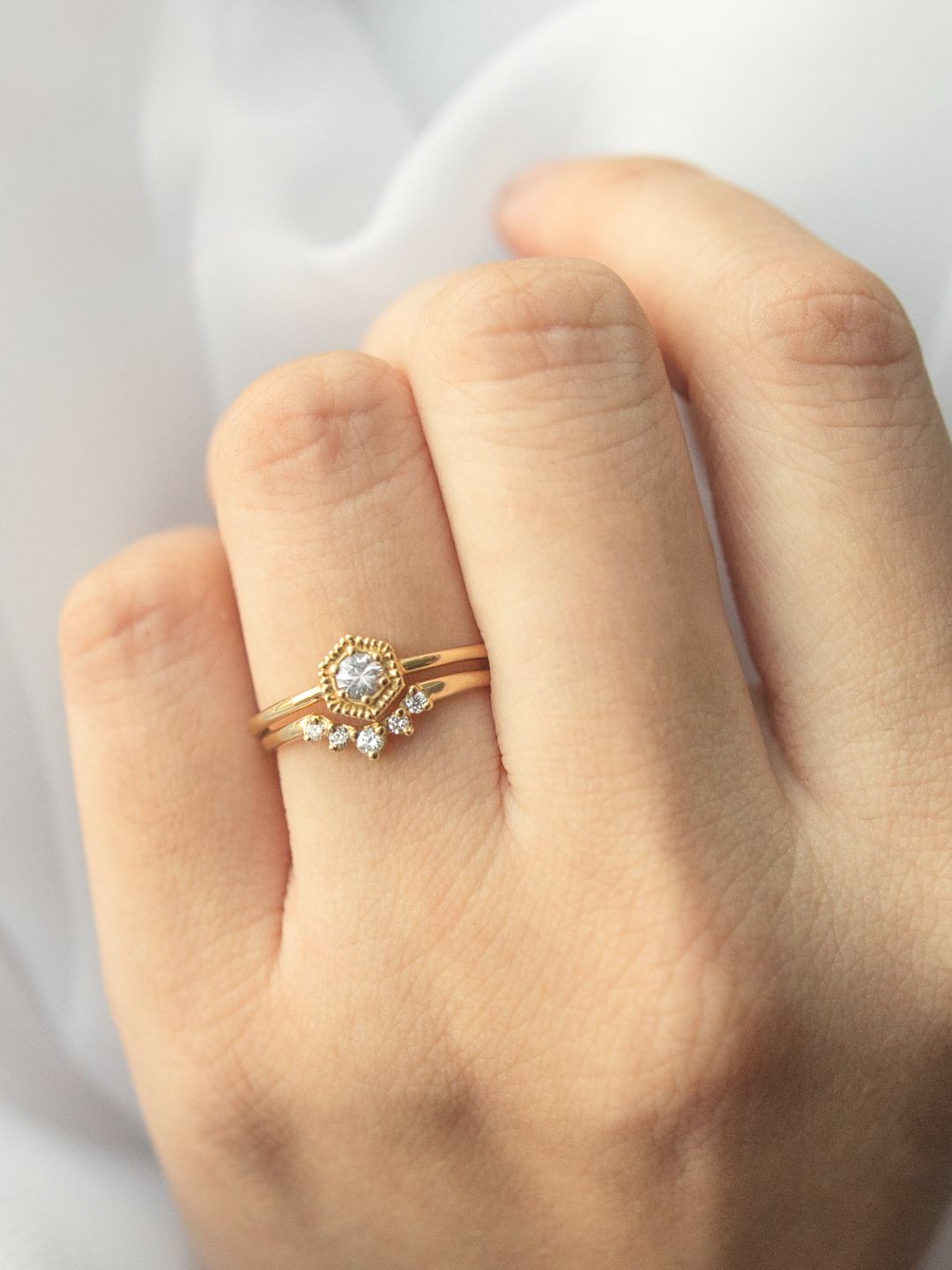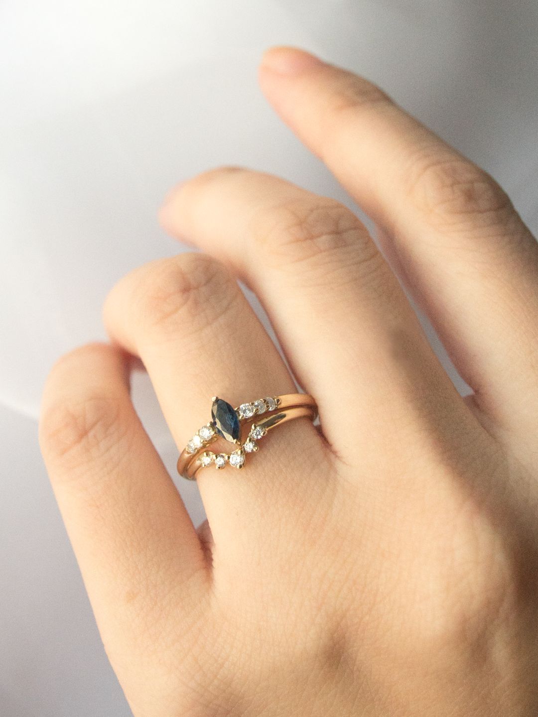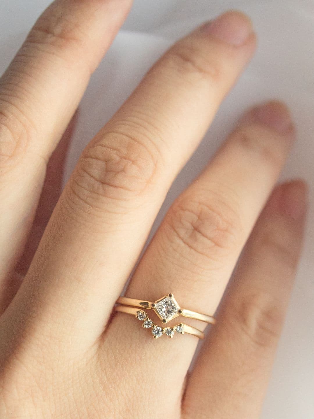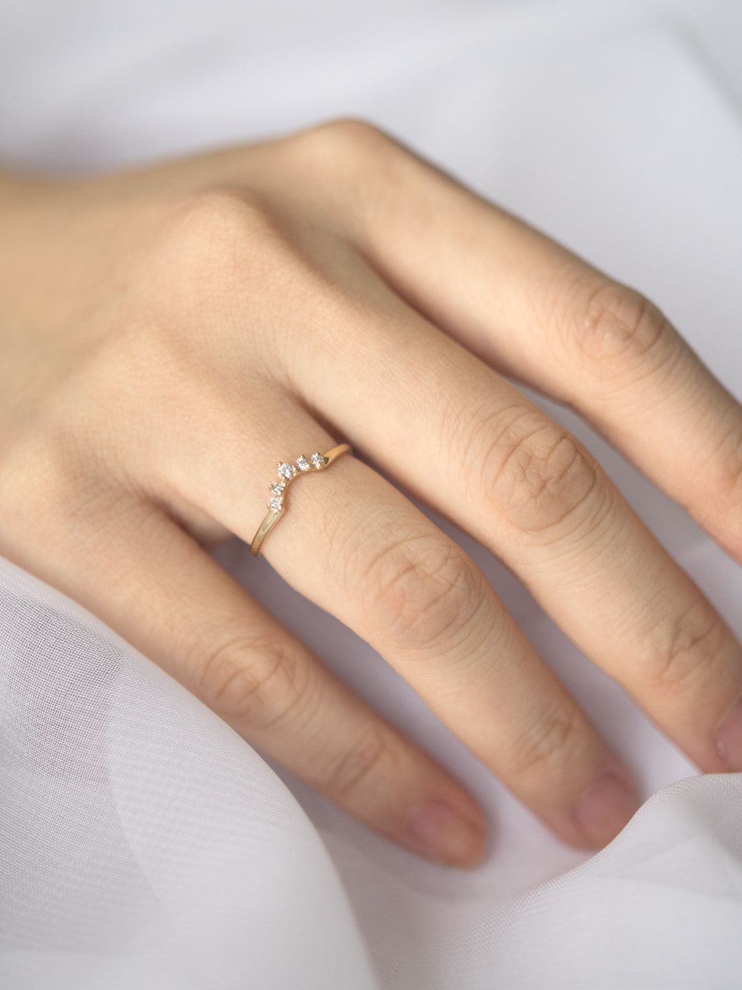 A beautiful petite curve diamond ring that is a great addition to your dainty engagement ring or stackable ring.
