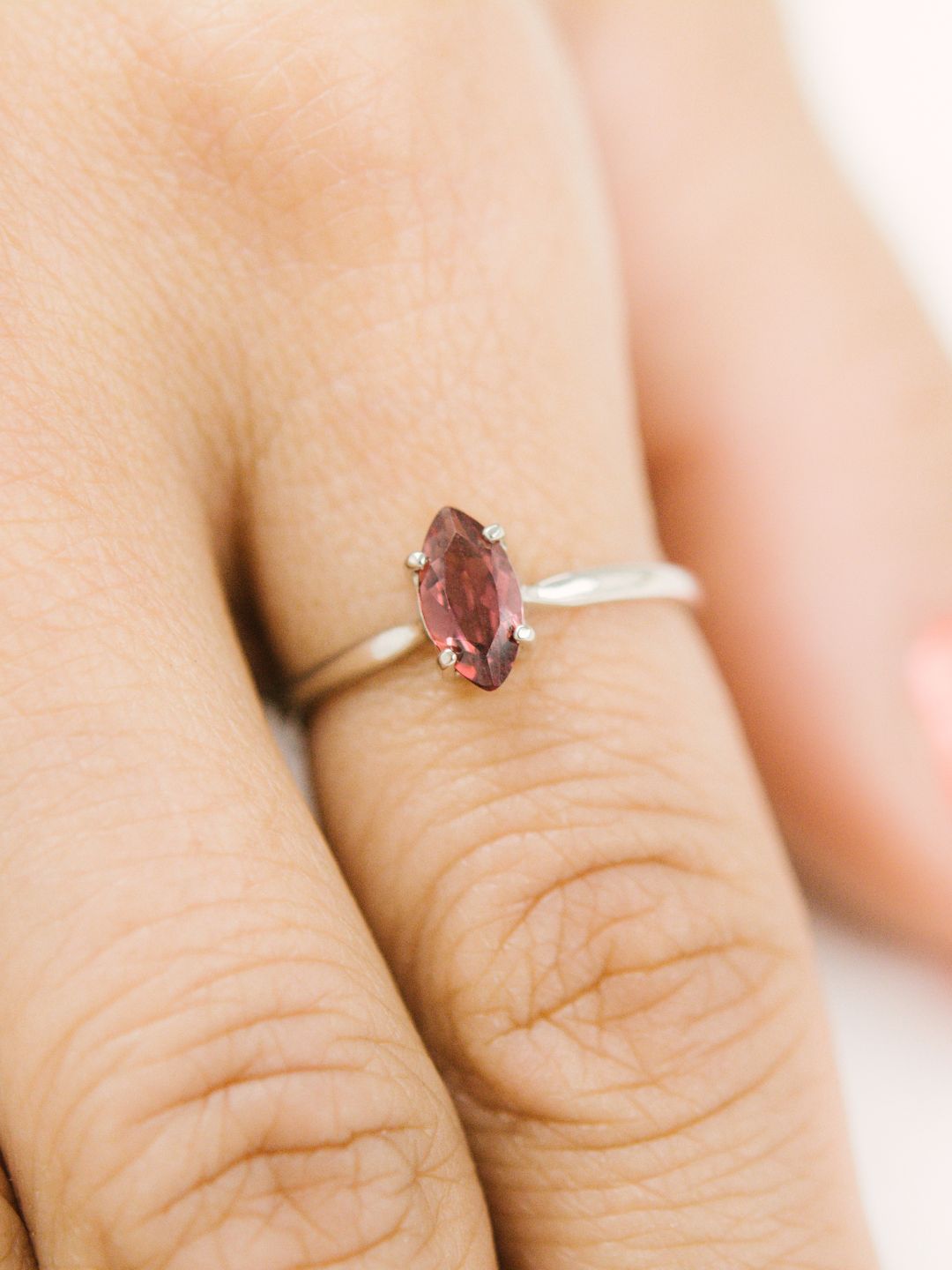 A single vow to last a lifetime. The Solenia Rhodolite Garnet Solitaire Ring is an exquisite and effortless ring. It boasts a shimmering solitaire of a deep-colored maroon rhodolite garnet in a marquise-cut - simply irresistible.