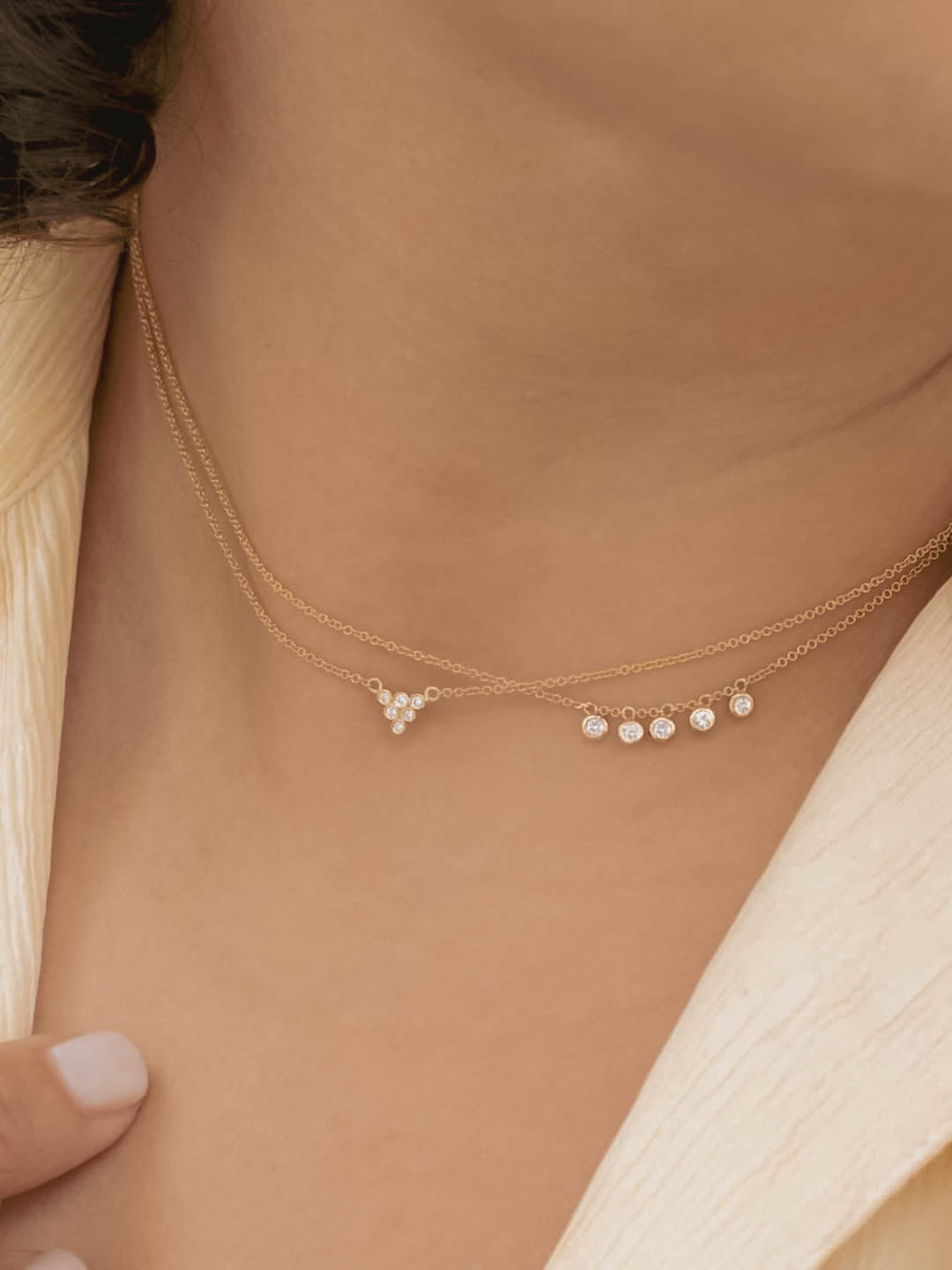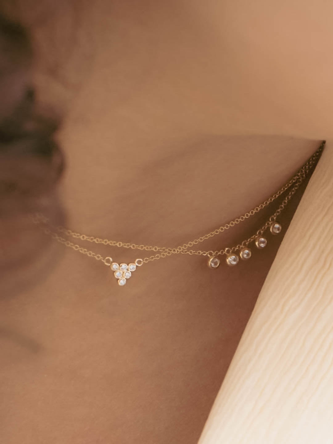 Warm Autumn Bezel Set Diamond Triangle Necklace