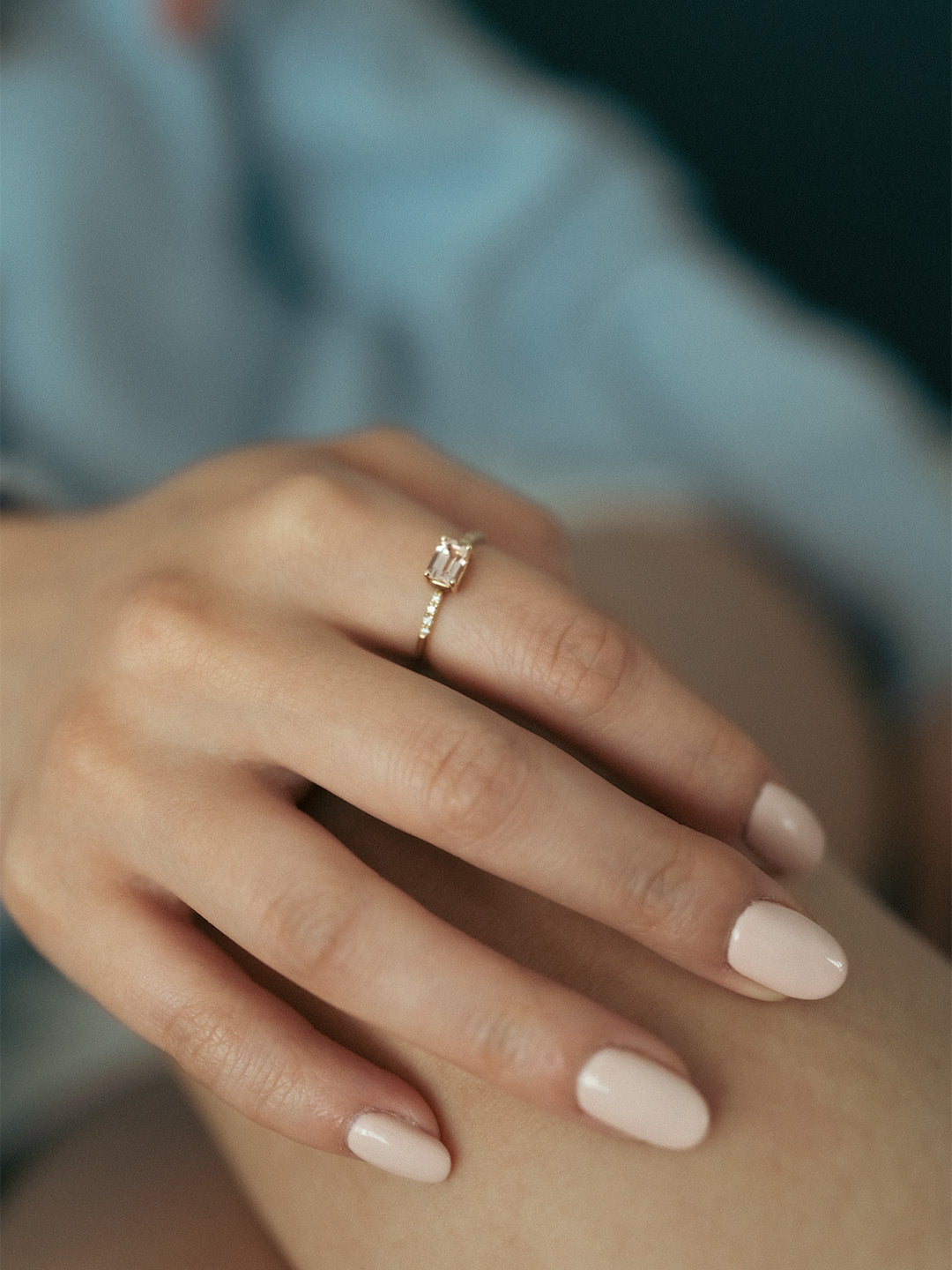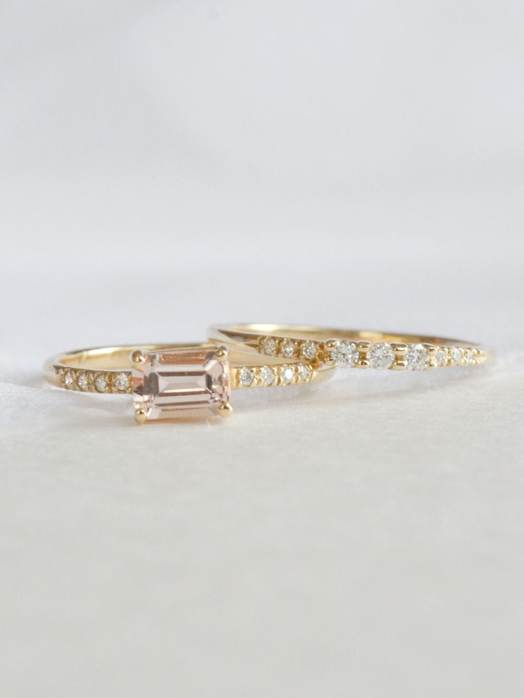 - One (1) Emerald Cut Morganite (approx 0.40 ctw )