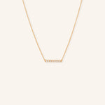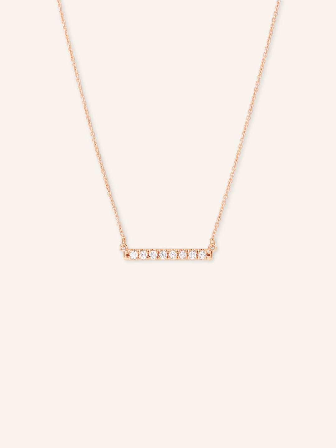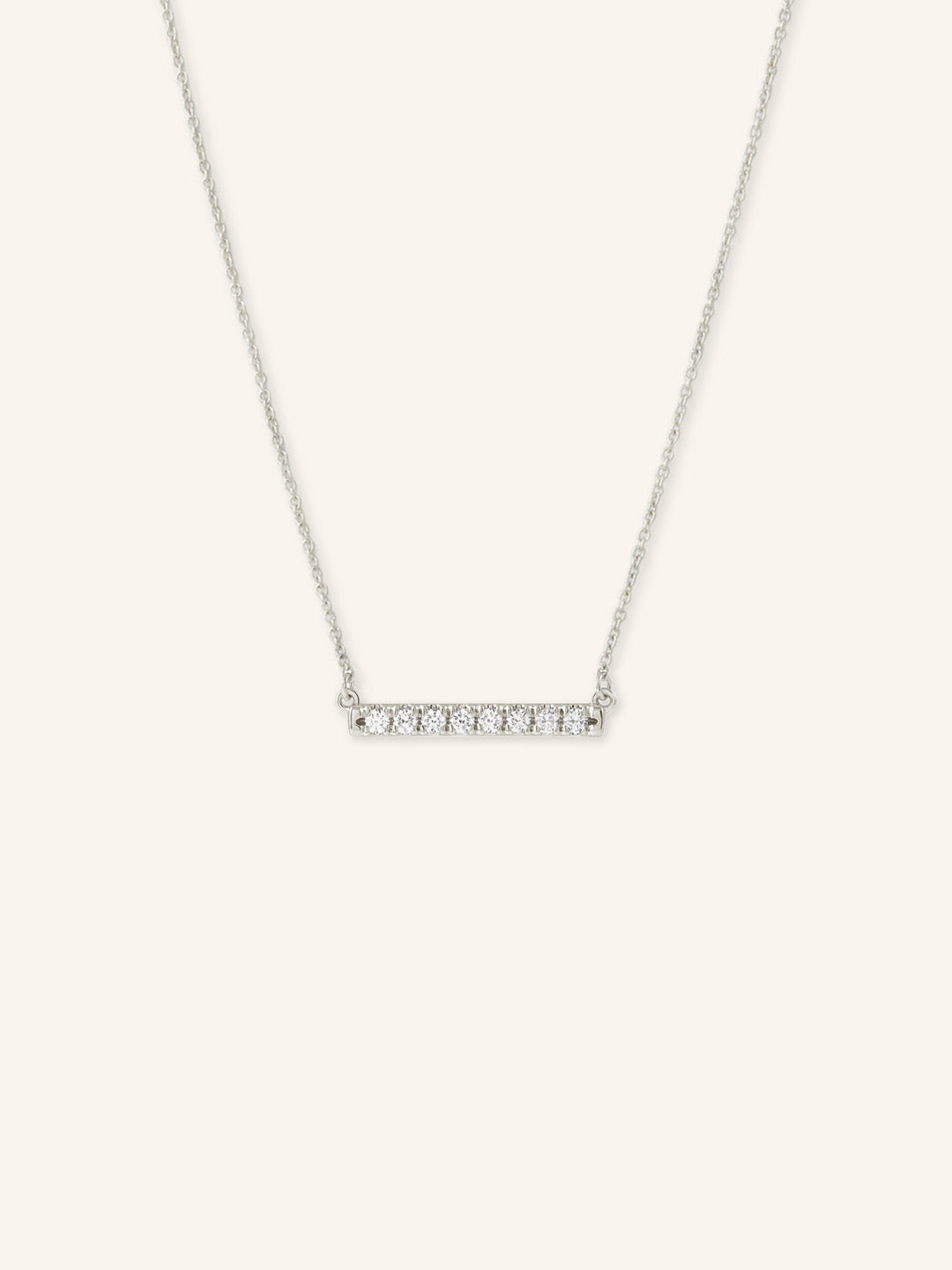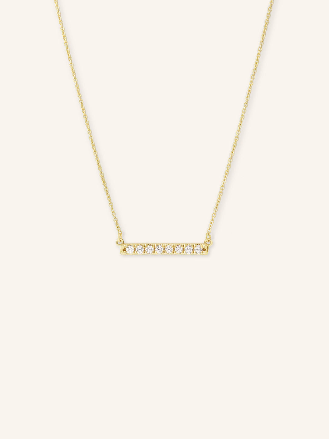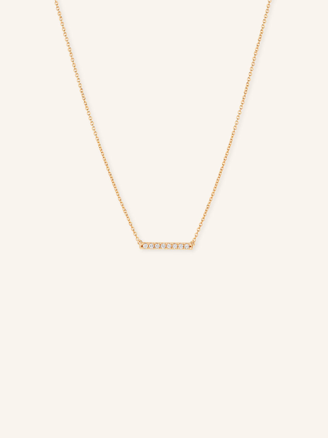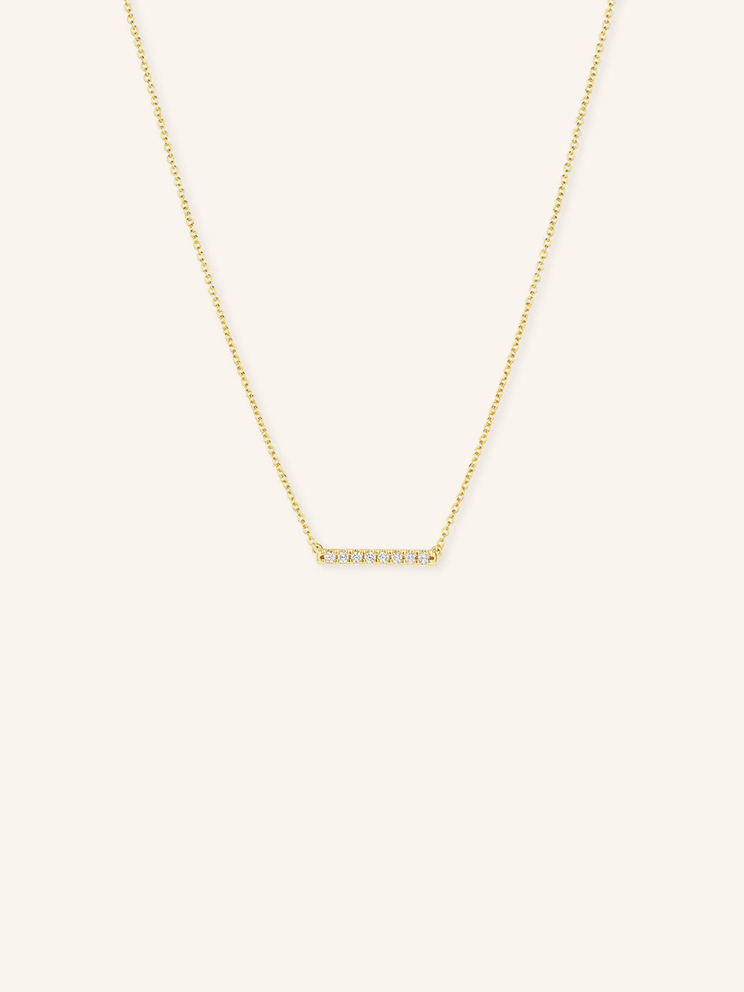 A refined take on a classic design, this necklace features a sleek bar set with shimmering diamonds. Minimal yet elegant, it’s perfect for everyday wear or layering with other pieces. A timeless staple for any jewelry collection.