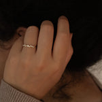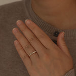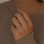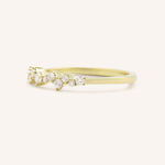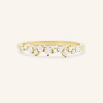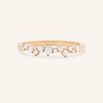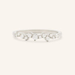 The Aubrey Scattered Diamond Anniversary Band features diamonds intentionally arranged in an off-set pattern, creating a playful yet elegant design. Rather than sitting in a straight line, each diamond is positioned to give the ring a dynamic, organic feel. A beautiful choice for an anniversary or to add a touch of modern sophistication to your collection.