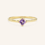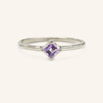 - One (1) Princess Cut Natural Amethyst (approx 0.15 ctw, AA grading).