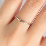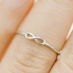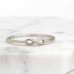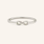 Petite and minimal, a beautiful infinity love ring that can be stacked with your favorite rings.
