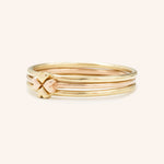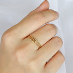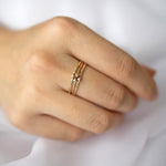 Solid 14k gold 3.45 mm wide stacked (1.15 mm wide per ring) and 1.10 mm thick band (available in yellow, white, or rose gold).