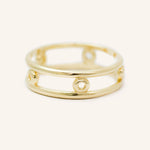 Take a journey through your brightly colored dreams with this piece. The Journey By Dream Ring is a solid 14K gold band that is made to be minimal and dainty. It is crafted with circle bezels to add to your ring stack or wear just on its own.