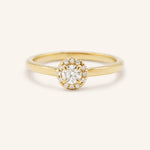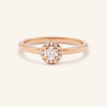 The Juliet Diamond Halo-Style Ring exudes timeless romance with its enchanting design. Featuring a dazzling center diamond encircled by a radiant halo of smaller diamonds, this ring amplifies brilliance and sparkle. The band, sleek and refined, ensures all attention remains on the breathtaking centerpiece. A perfect choice for those seeking a classic yet elegant symbol of love.