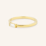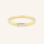 The Newport Straight Baguette Diamond Ring is a minimalist yet sophisticated design, featuring a single straight baguette set on a sleek gold band. Its clean lines and modern aesthetic make it perfect for stacking or wearing alone for a subtle touch of elegance. A timeless piece that blends simplicity with refined beauty.