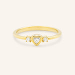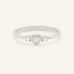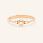 The Three Stone Diamond Heart Stackable Ring is a charming and delicate piece, perfect for layering or wearing alone. Featuring a dainty heart centerpiece accented by two sparkling diamonds, this ring adds a touch of romance and brilliance to any stack. Its minimalist yet playful design makes it a sweet and versatile addition to your jewelry collection.