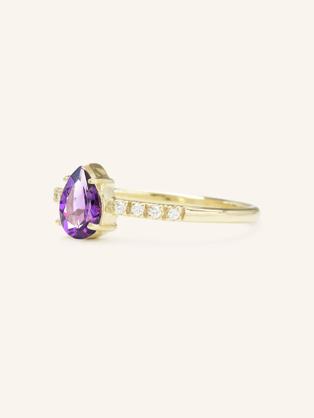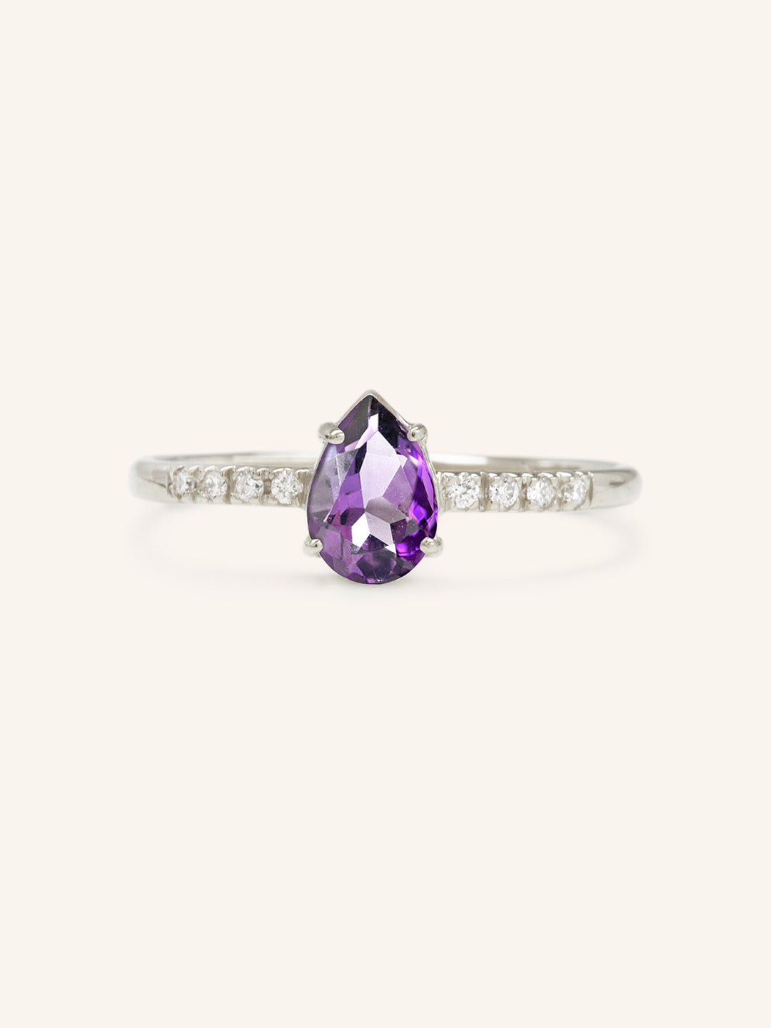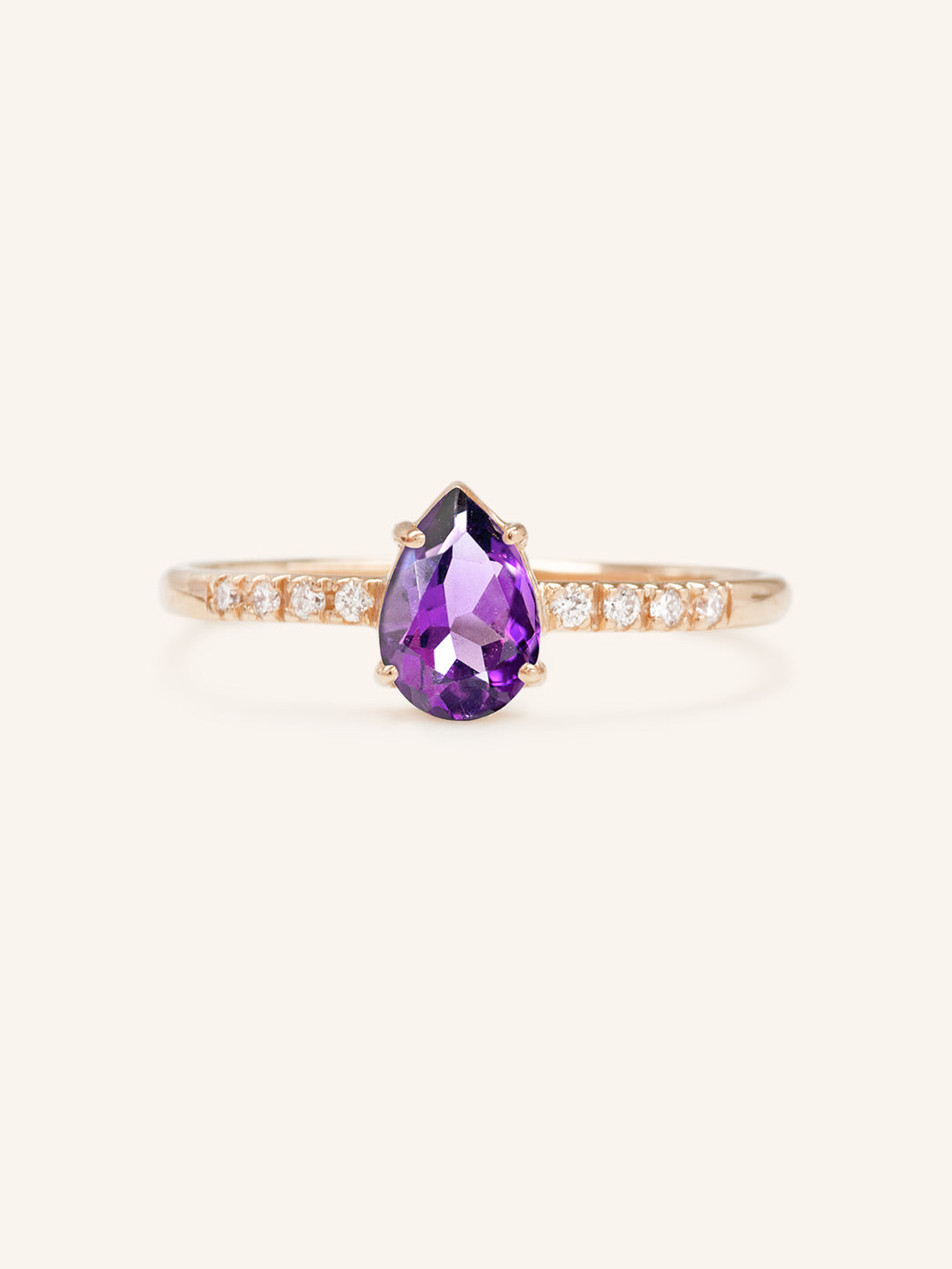 - One (1) Pear Shape Natural Amethyst (approx 0.65ctw / 7x5mm, AA grading)
