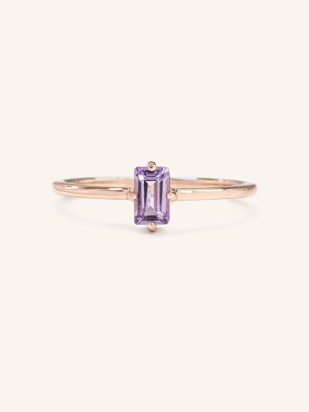 The Daylily collection is a petite selection of rings with infinite possibilities. These Emerald cut rings are North-South-East-West prong set, perfect for adding on to your stack or wearing alone for a statement. Choose from multiple gemstones to make the perfect match for you.