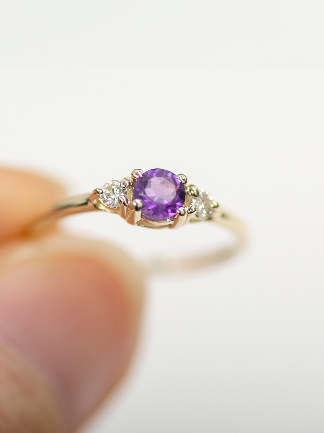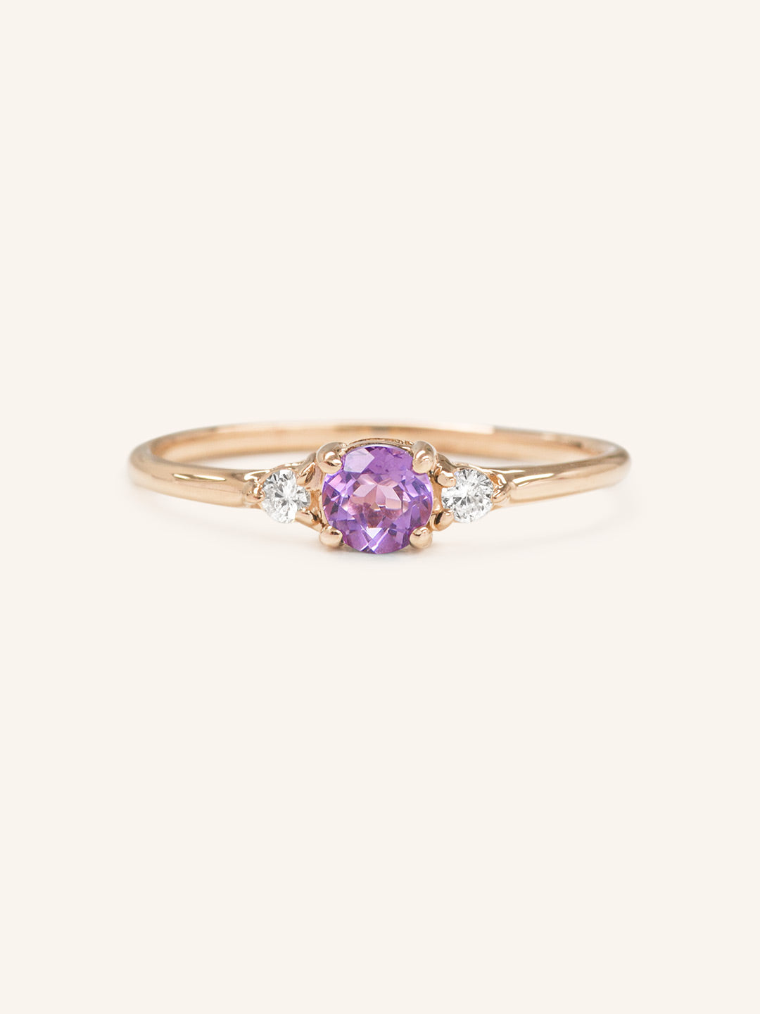 - One (1) Round Natural Amethyst (approx 0.24 ctw, AA grading)