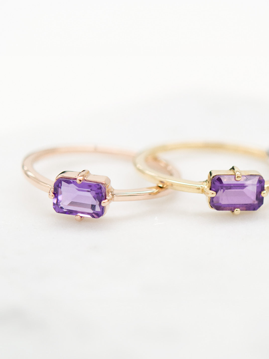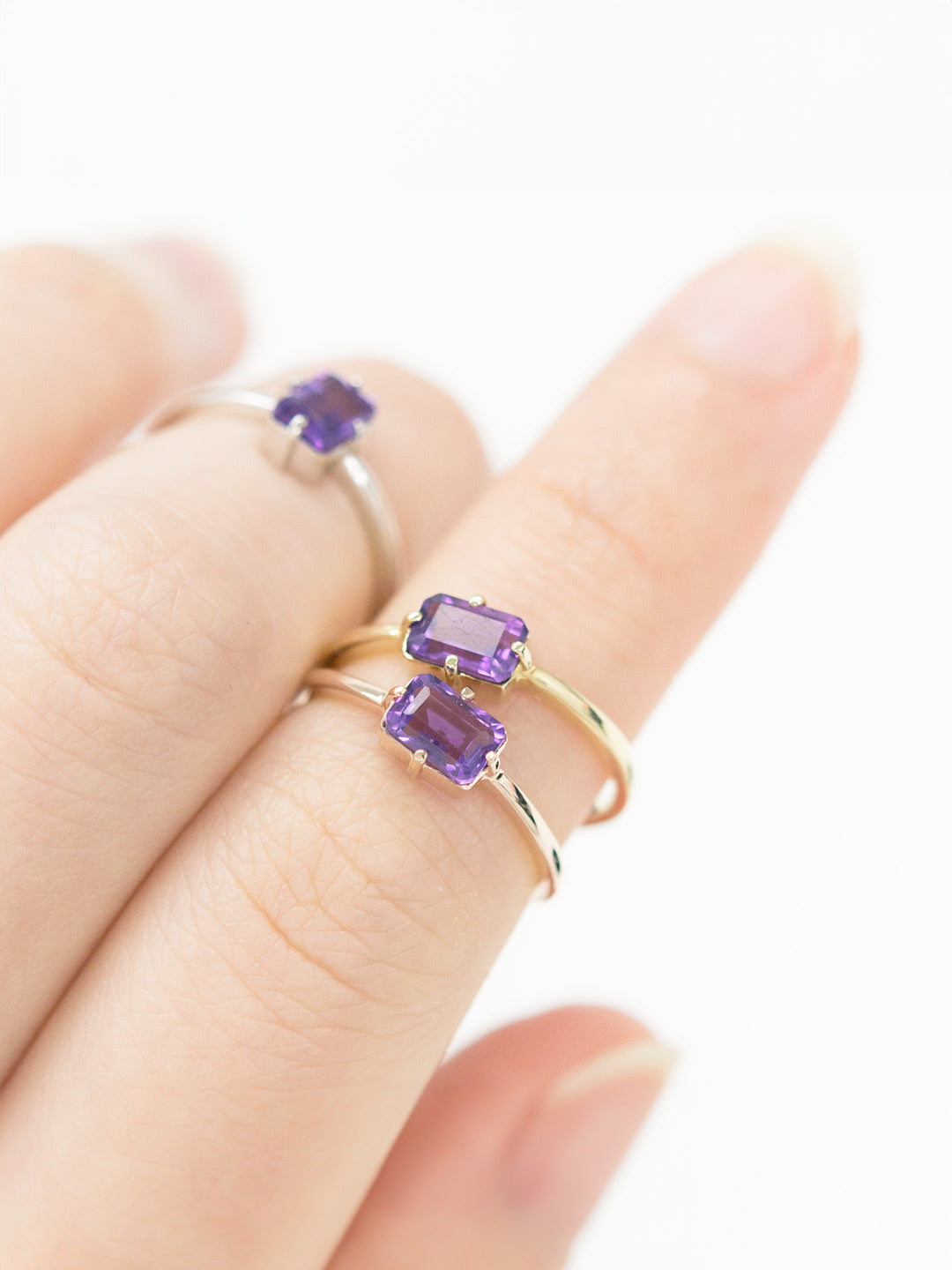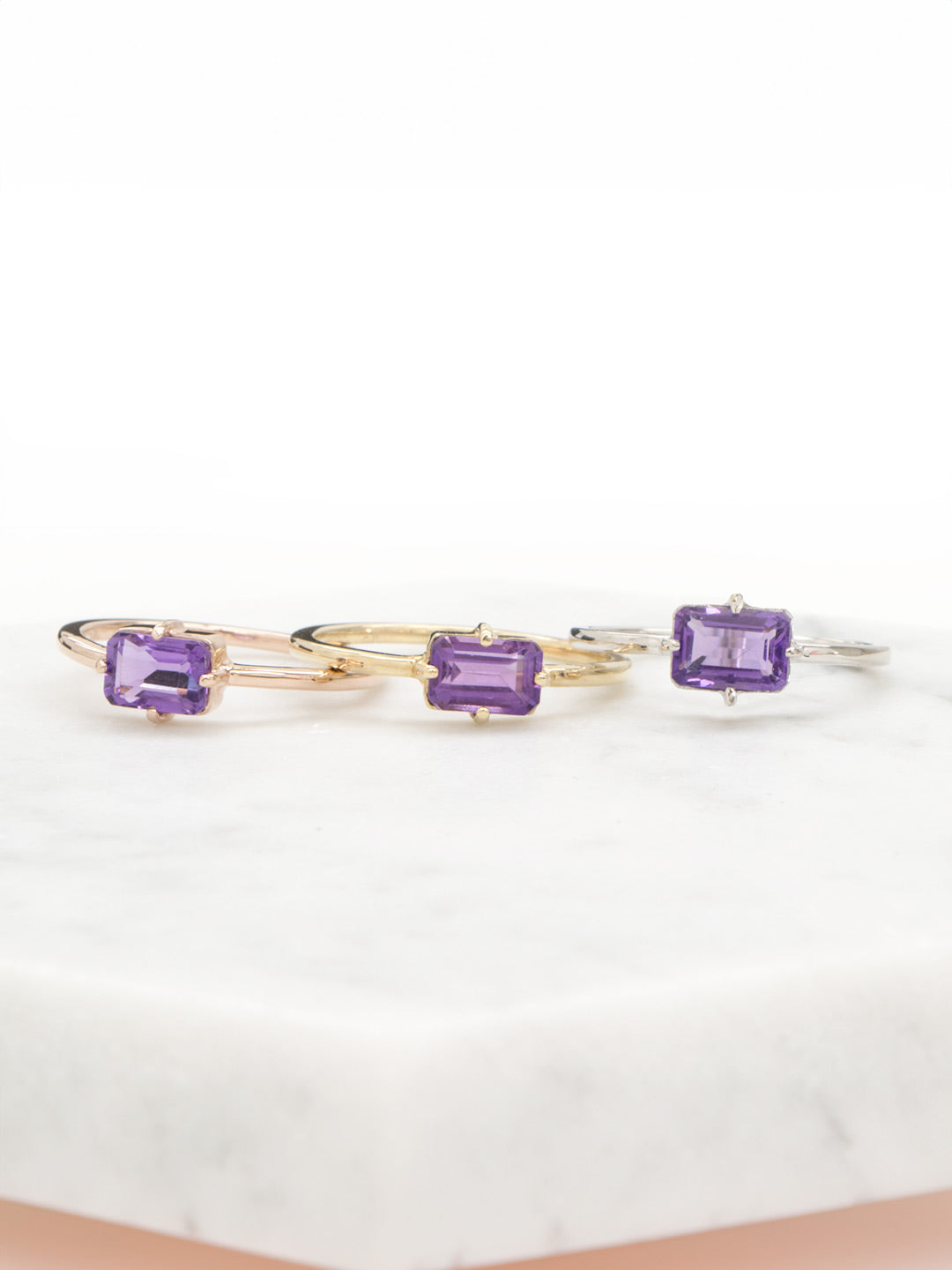 - One (1) Emerald-Cut Natural Amethyst (approx 0.58 ctw / 6x4mm, AA grading)