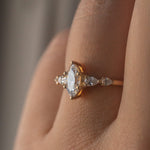 The Bella Marquise Diamond Engagement Ring showcases a stunning marquise-cut diamond at its center, elegantly set in 14k gold. Its sleek and elongated shape creates a captivating, vintage-inspired look, perfect for brides seeking a ring with timeless elegance and modern sophistication. This ring’s unique silhouette enhances the diamond’s brilliance, making it a breathtaking symbol of your everlasting love.