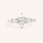 Featuring a marquise cut lab-grown diamond, available in 8x4 mm, 9x4.5 mm, or 10x5 mm sizes. The center stone will come with an IGI report.