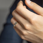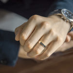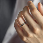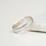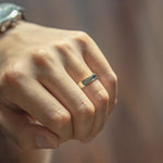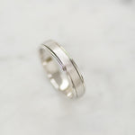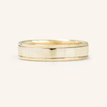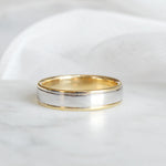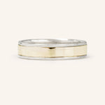 A classic two-tone half-flat edge band 5MM in width. The Coupled Wrought Band symbolizes your union and your promise to cherish each other forever. It's a comfortable ring with grooved edges - a subtle twist to a classic piece.