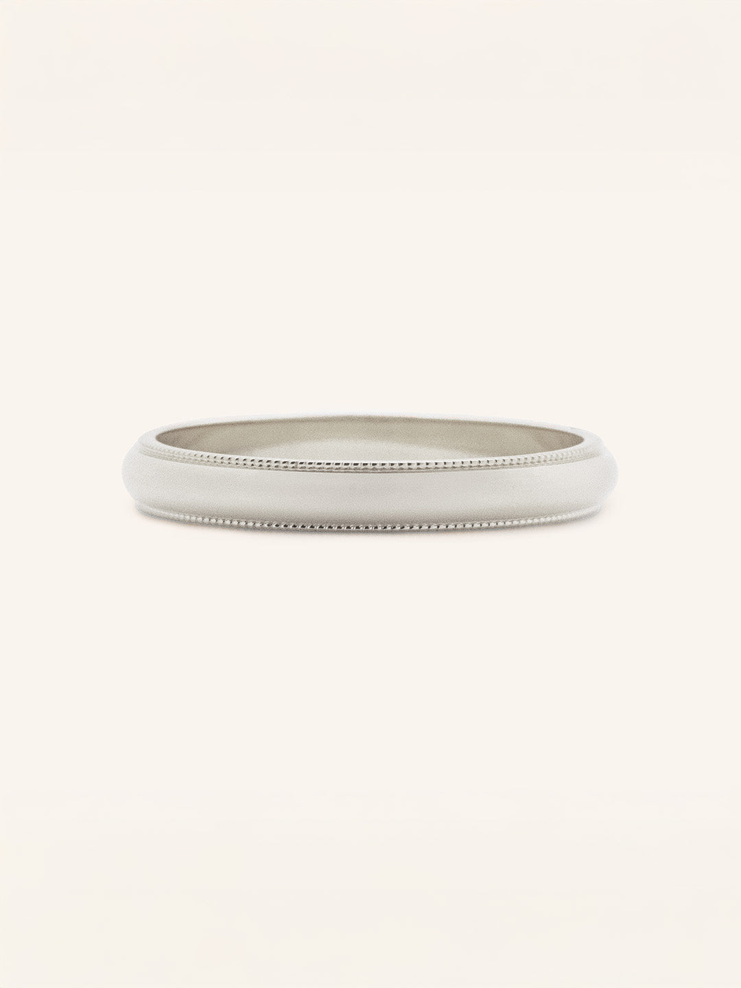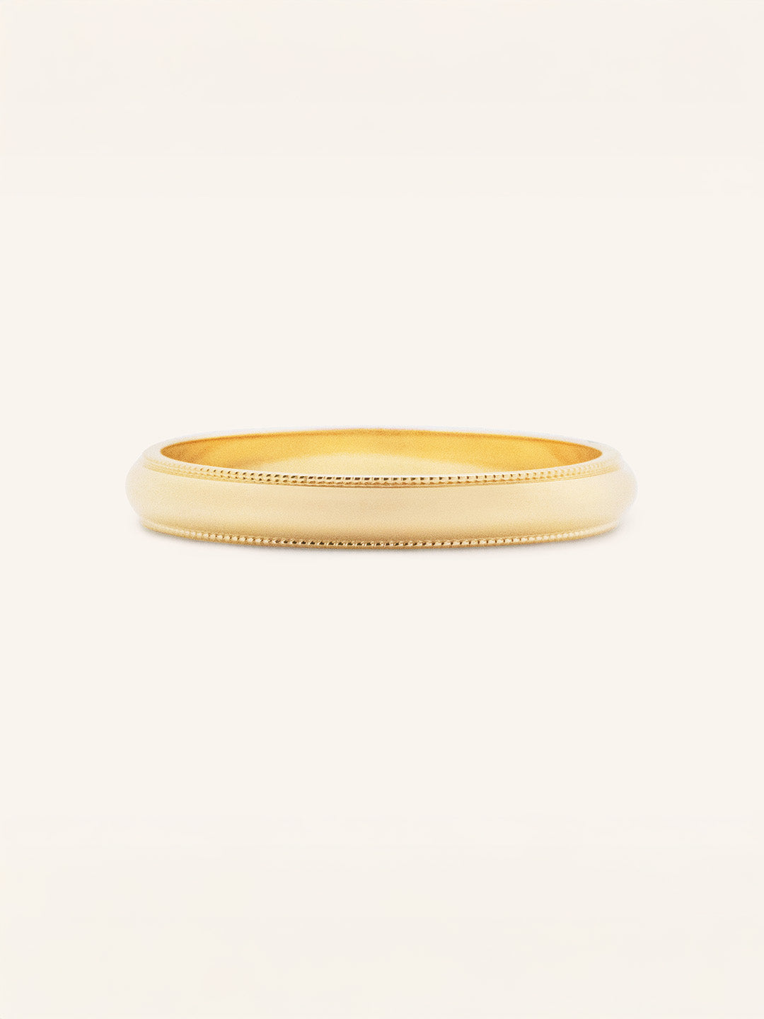 The Standard Milgrain Wedding Band showcases a timeless half-round silhouette enhanced by delicate milgrain detailing along the edges. Crafted in 14k gold, this band offers a blend of classic design and vintage-inspired charm. Perfect for a wedding or anniversary, the Milgrain Band is a subtle yet elegant piece that celebrates enduring style and commitment.