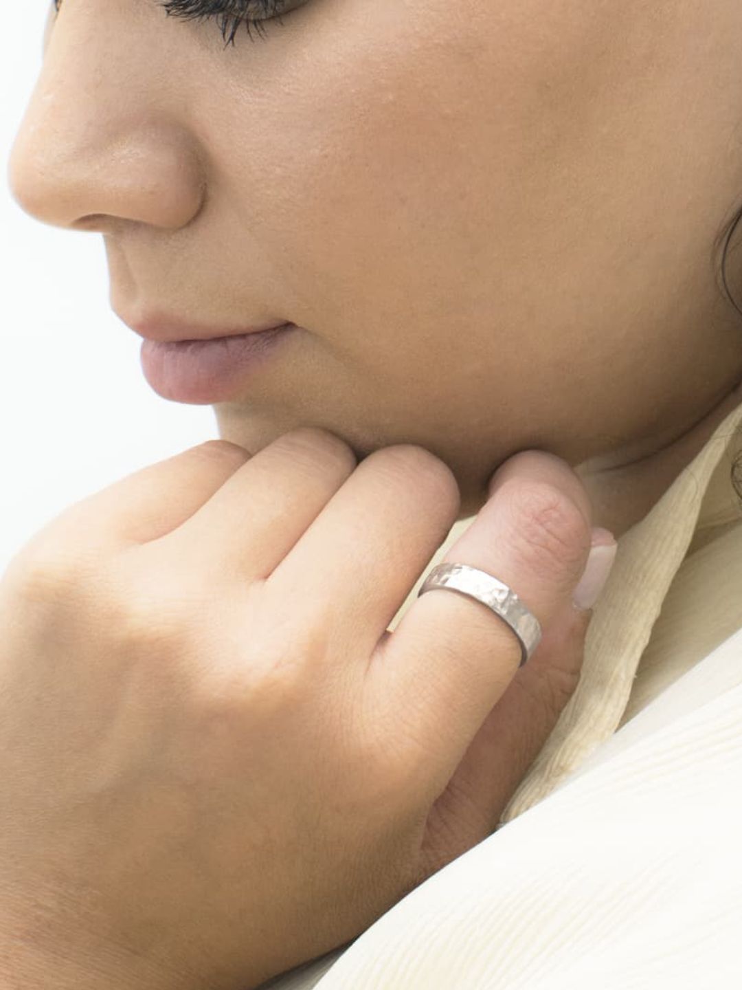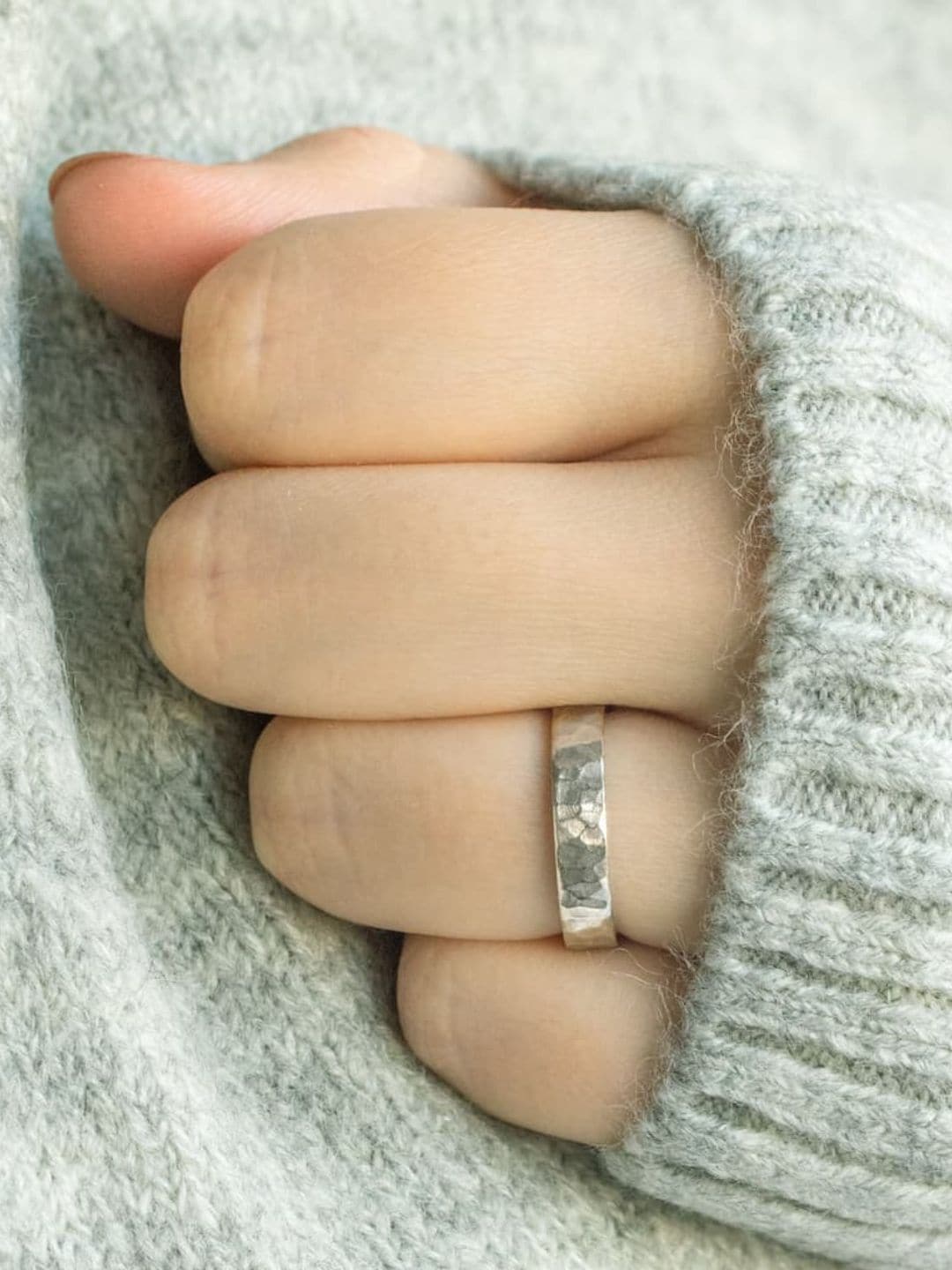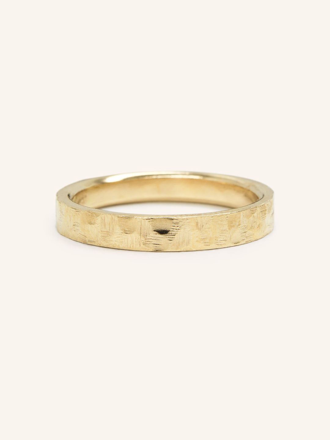 Ripple Water 4MM Hammered Flat Edge Wedding Band
