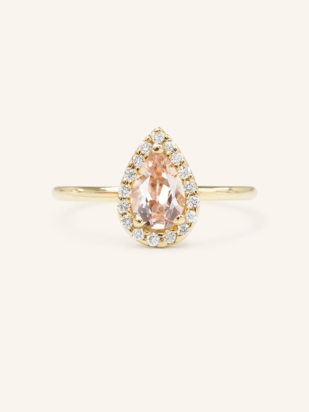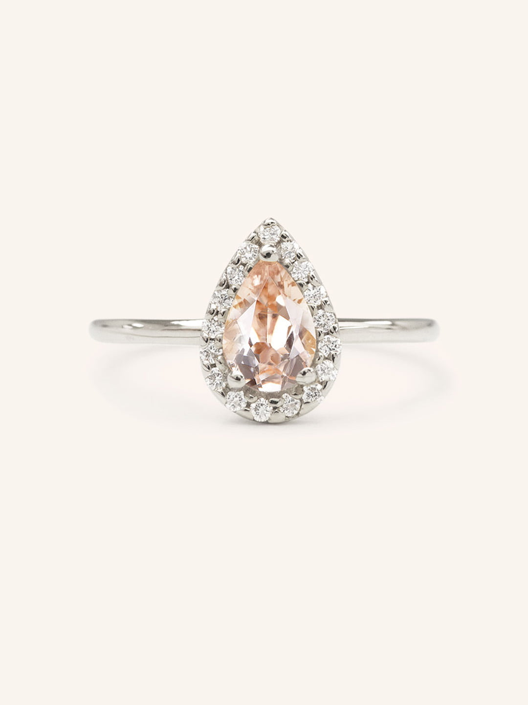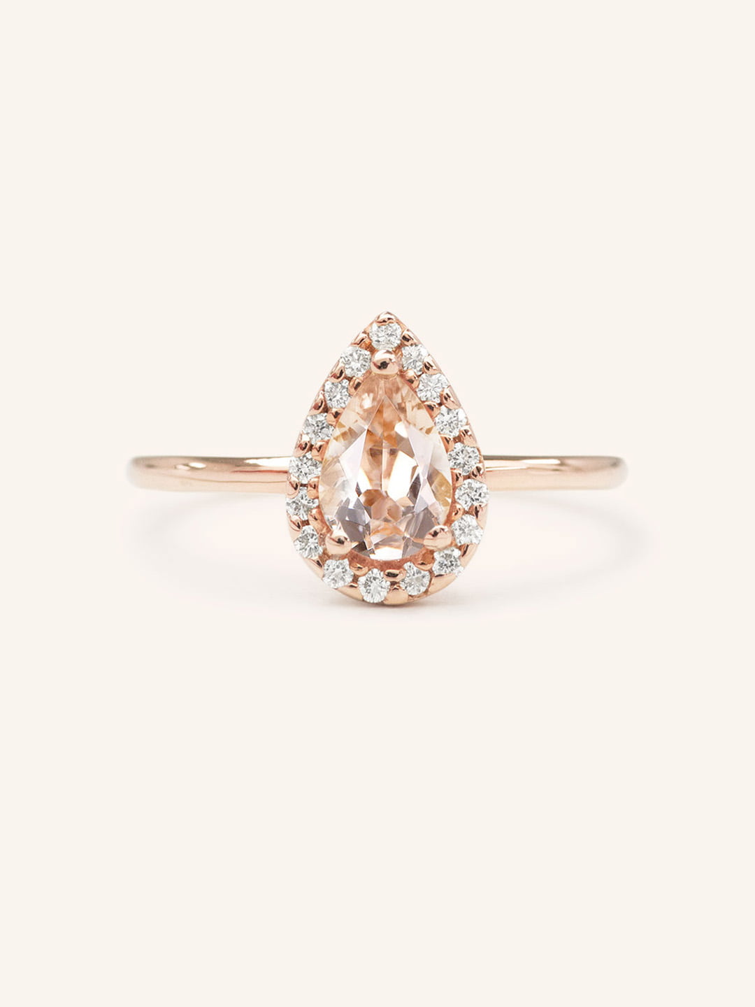 BRIDAL ROSE Halo Pear Morganite Engagement Ring