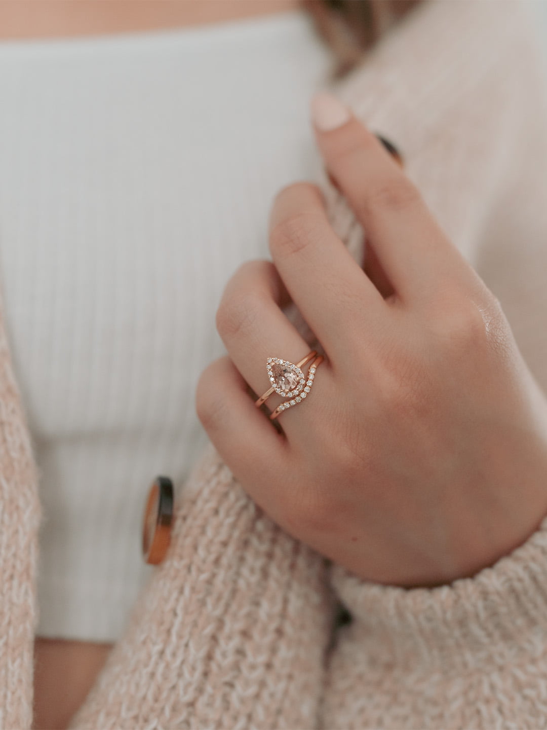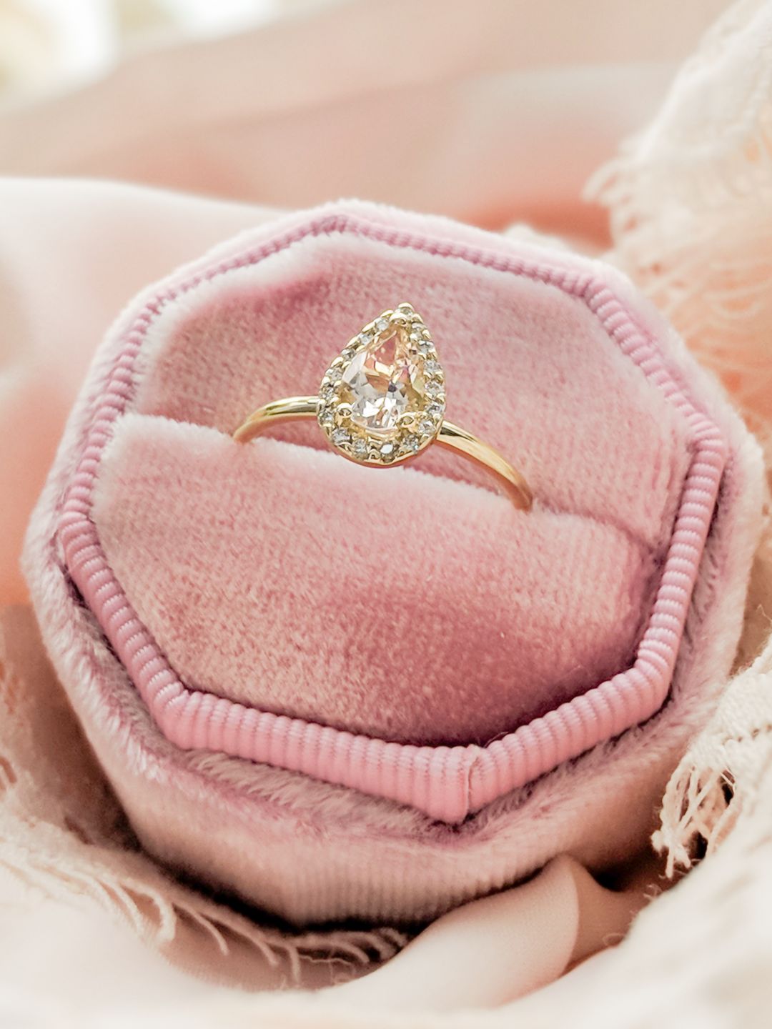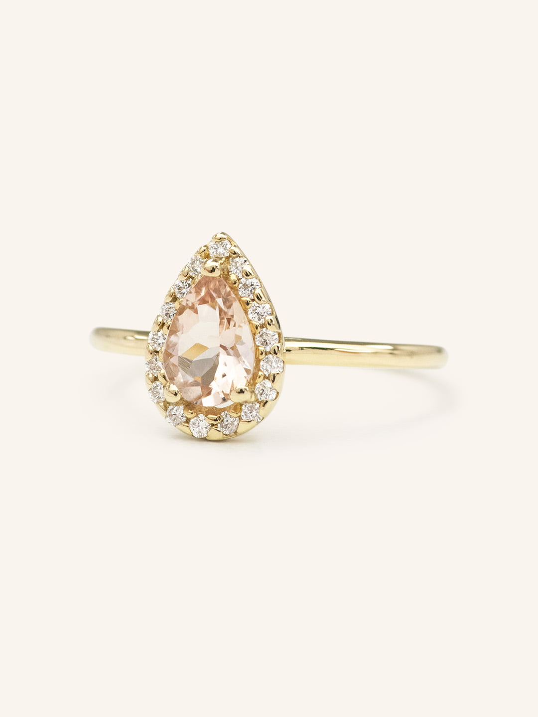 BRIDAL ROSE Halo Pear Morganite Engagement Ring