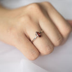 Our Buttonsage Solitaire Ring is set with a rich-colored garnet with beautiful mix of red and pink, this ring will attract the bees and butterflies trailing behind in a bewitching display of colors.