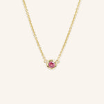 Fall in love with this gorgeously simple necklace. The Fall into Autumn Necklace is a dainty piece that features a solitaire center stone of your choice. The bezel setting captures the beauty of your chosen stone making this piece perfect for stacking.