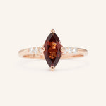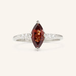 Discover the exquisite beauty of this Hidden Halo Marquise Garnet Engagement Ring. Its unique diamond halo and embellished diamond accents on the band will add a touch of elegance to any occasion. Perfect for those seeking a sophisticated and exclusive piece of jewelry.