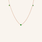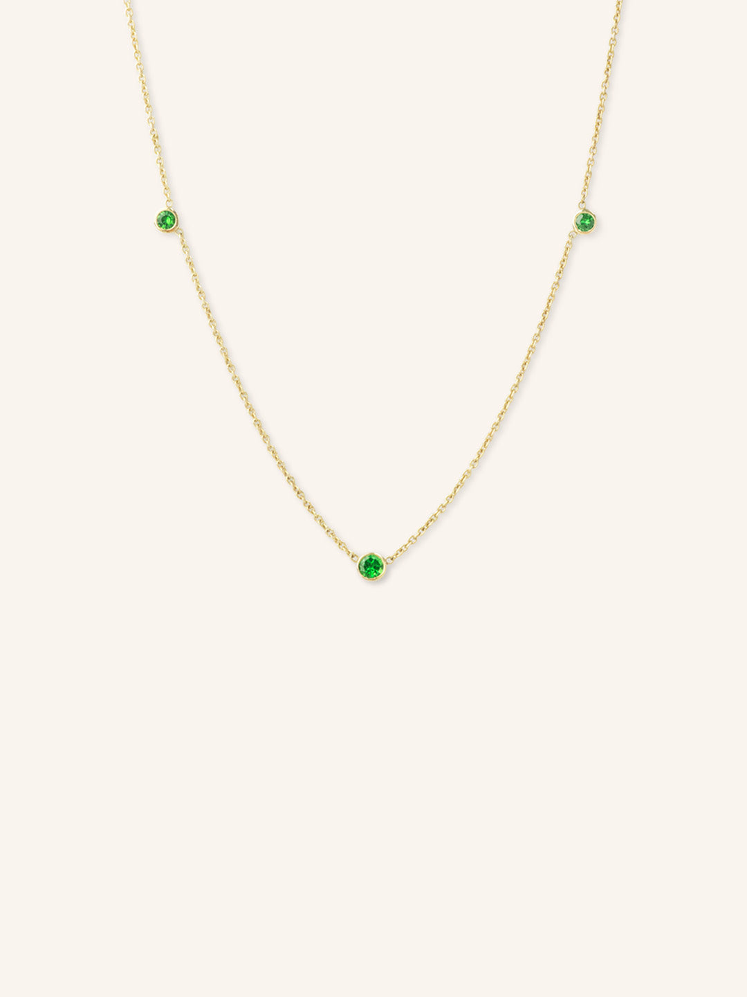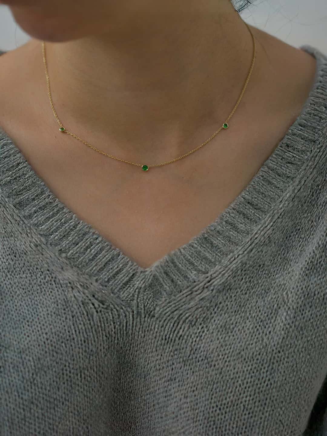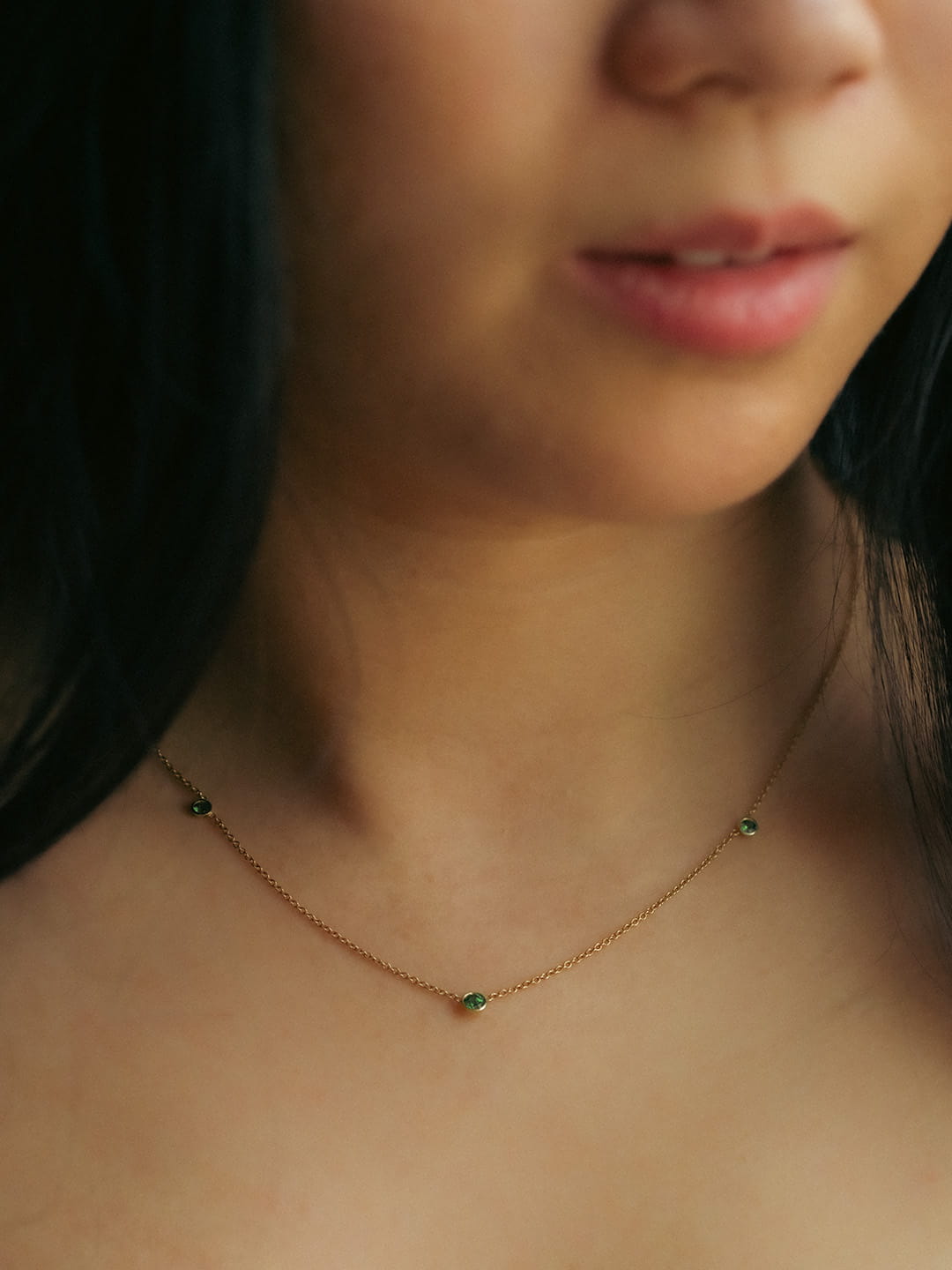 Solid 14k gold with three bezels laid on a single 1.30 mm cable chain with a choice of 16" or 18" length (available in yellow, white, or rose).