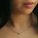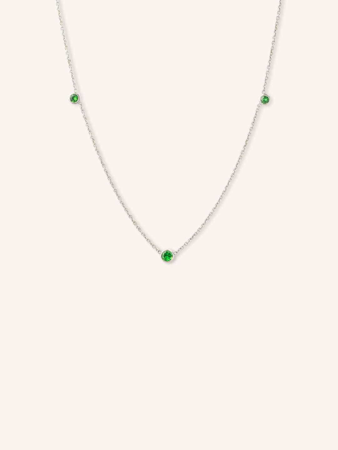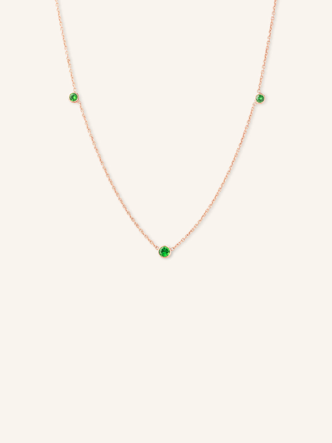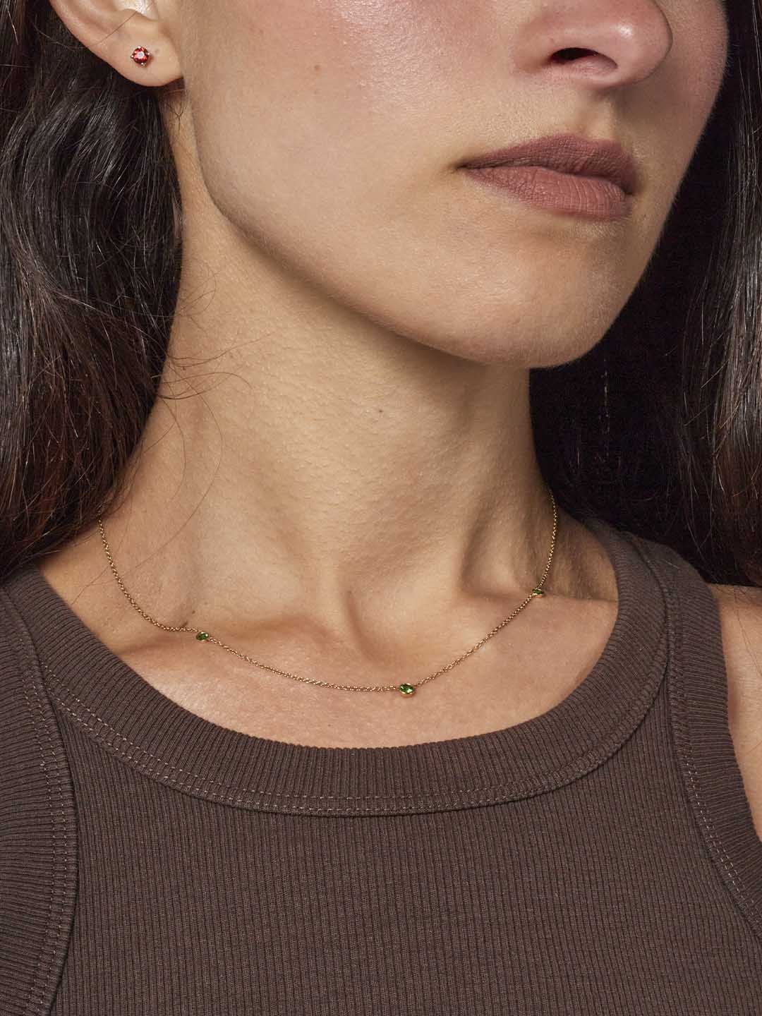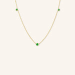 Solid 14k gold with three bezels laid on a single 1.30 mm cable chain with a choice of 16" or 18" length (available in yellow, white, or rose).