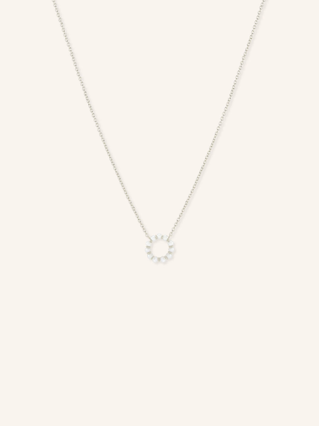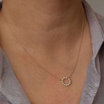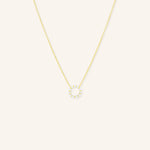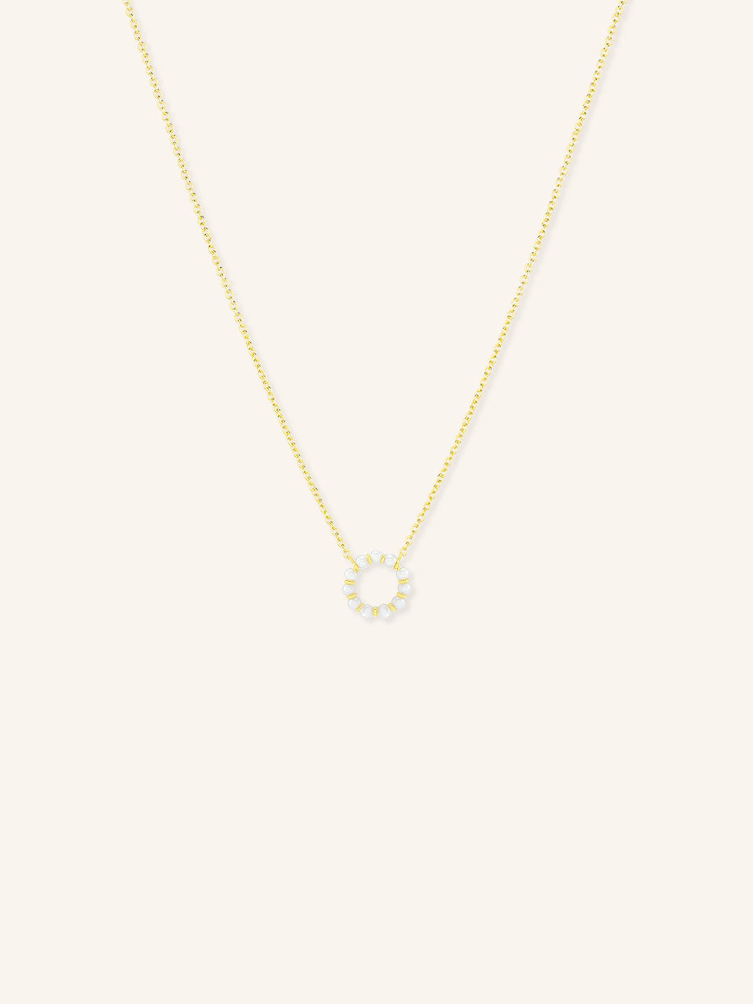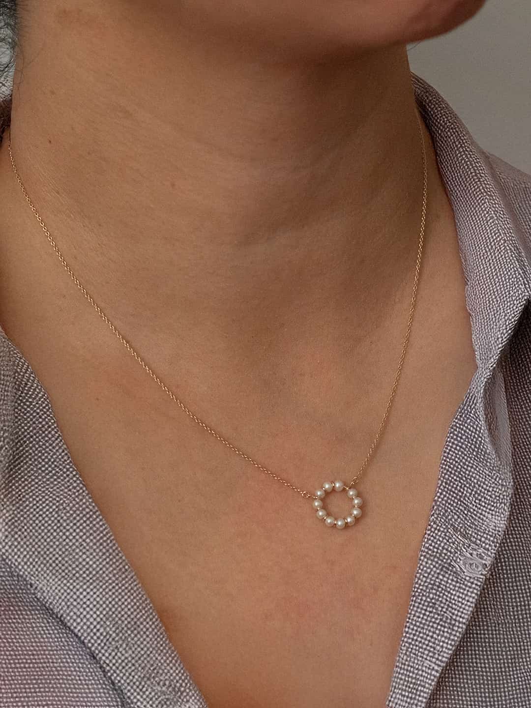The Cultured White Freshwater Pearl Circle Necklace features a delicate circle pendant adorned with luminous cultured white freshwater pearls. Set in 14k gold, this necklace blends timeless elegance with a modern design, making it perfect for both everyday wear and special occasions. Its minimalist yet sophisticated look adds a touch of refinement to any outfit.