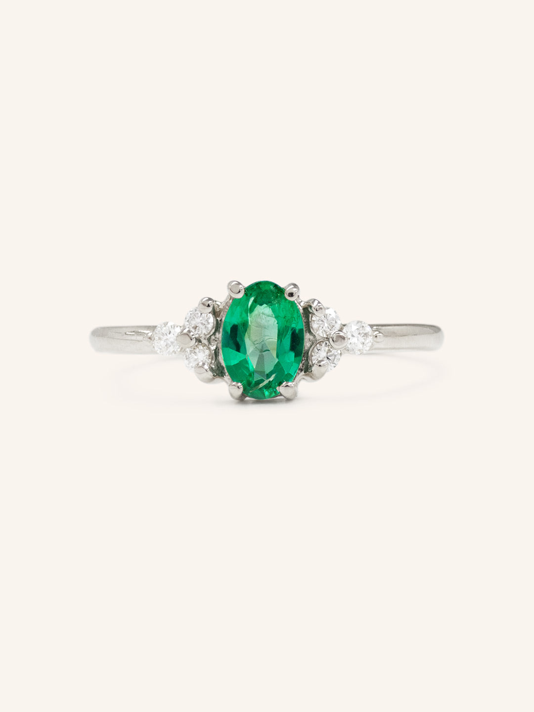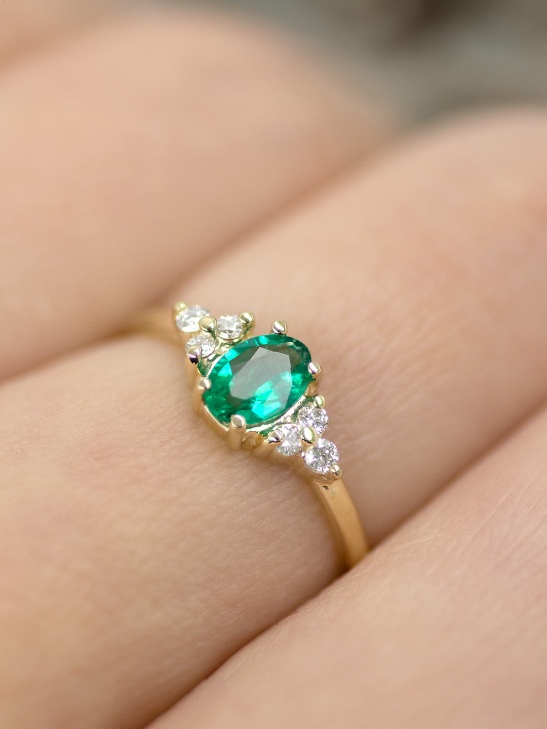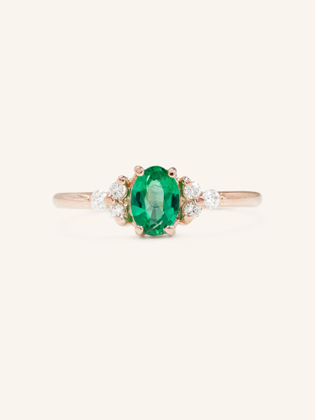 Blooms in Spring Oval Emerald Diamond Engagement Ring