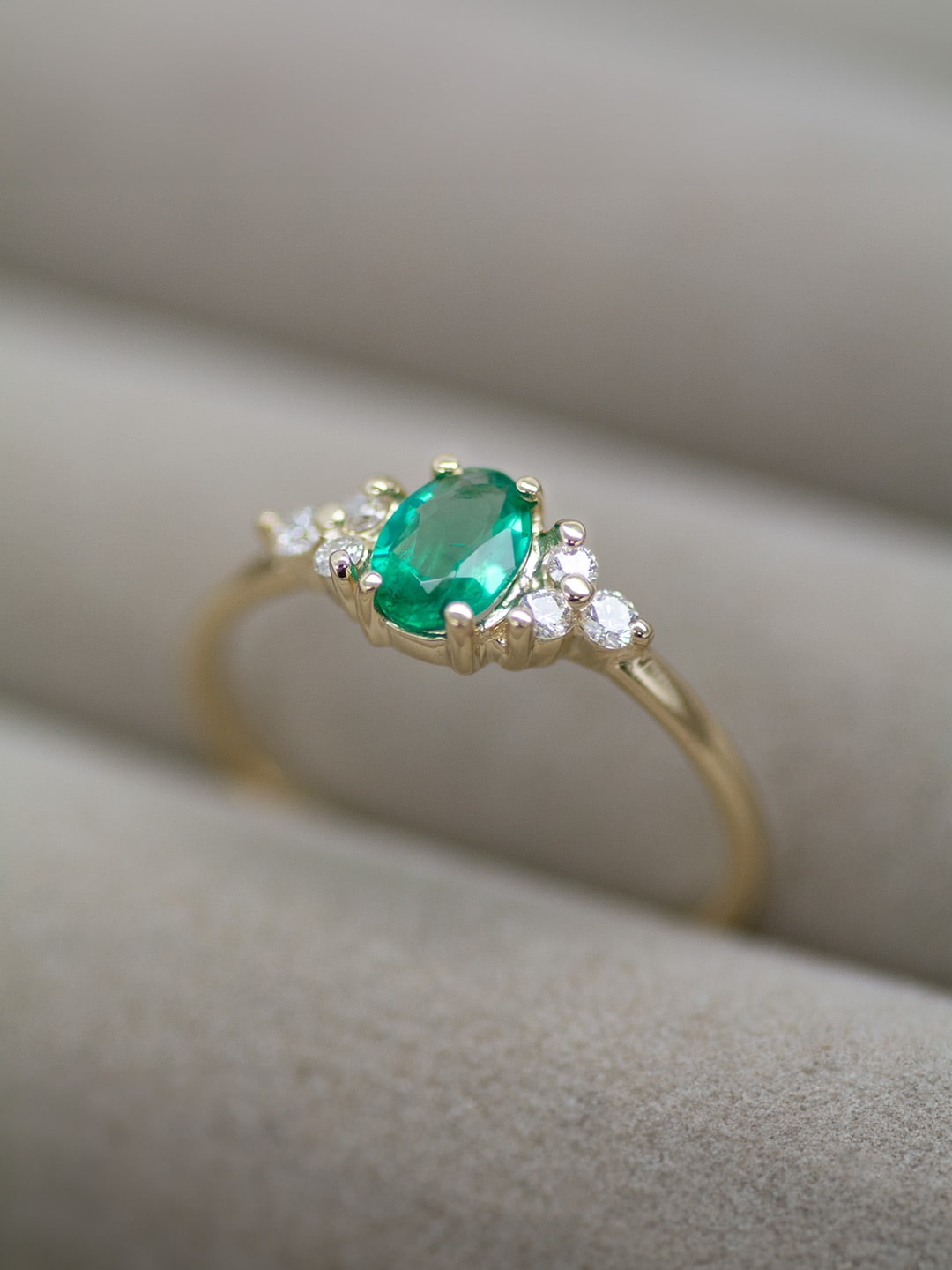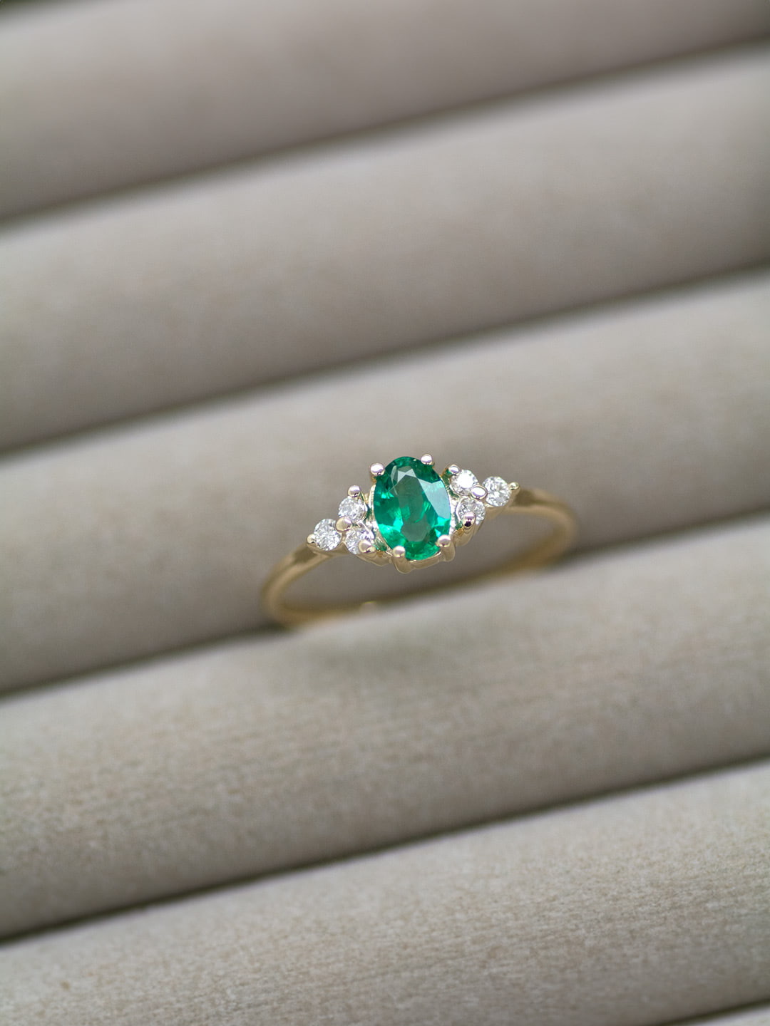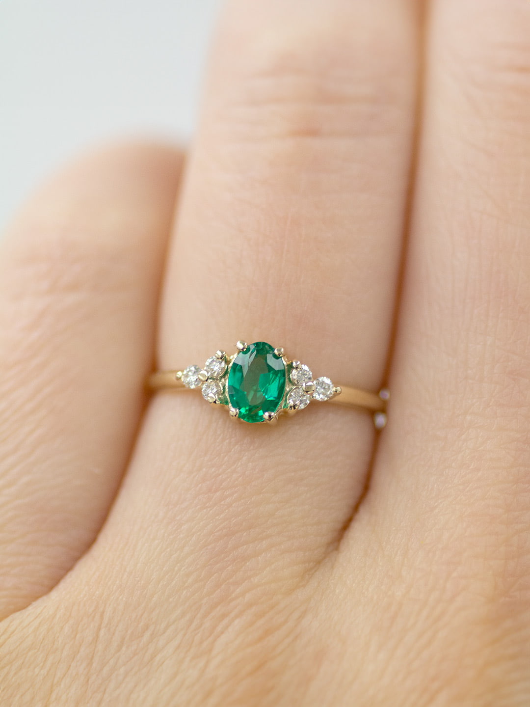 Blooms in Spring Oval Emerald Diamond Engagement Ring