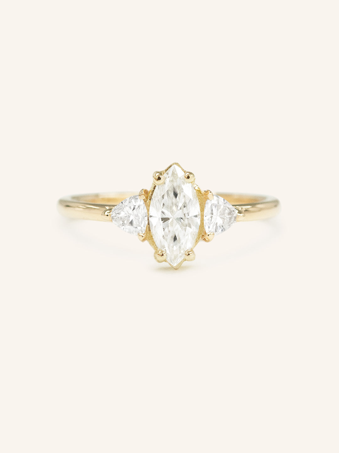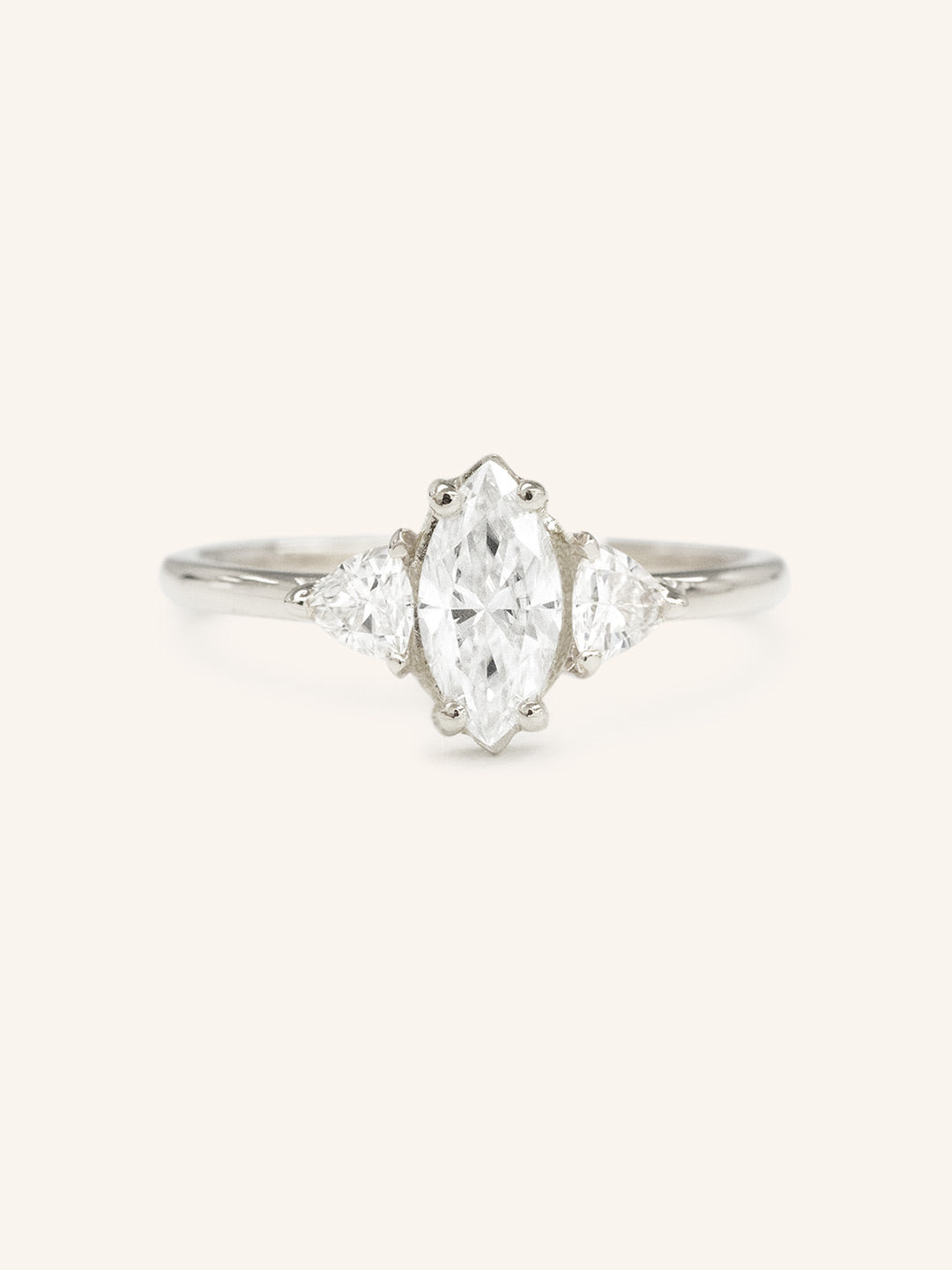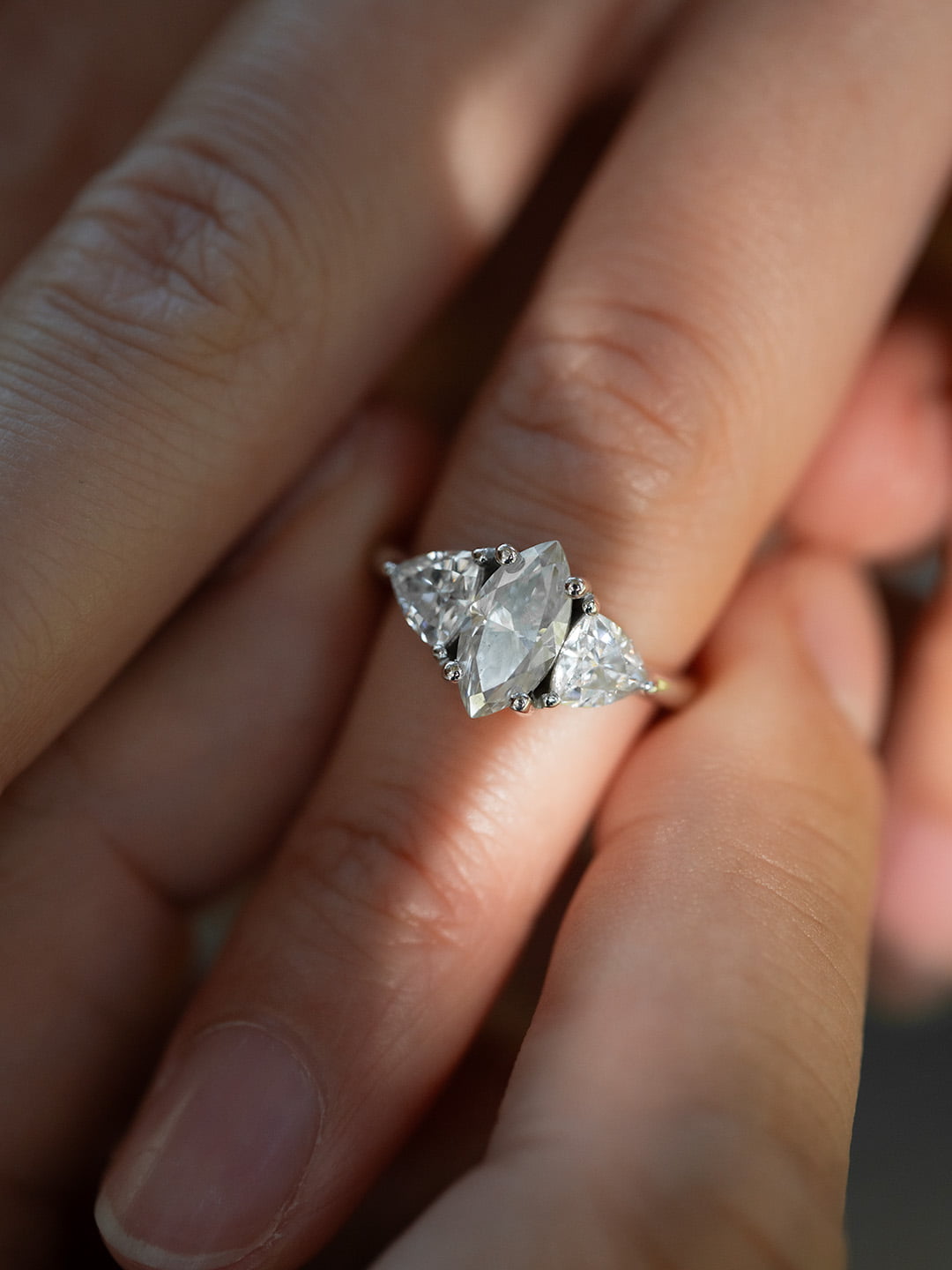 Summer Triangle Marquise Moissanite Three Stone Engagement Ring