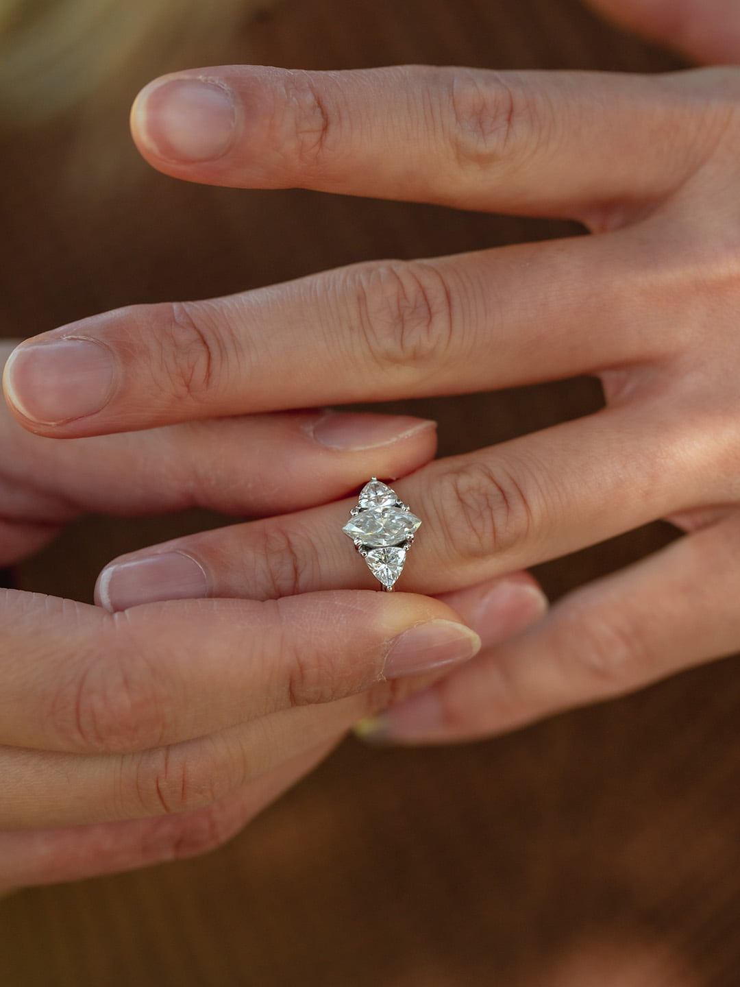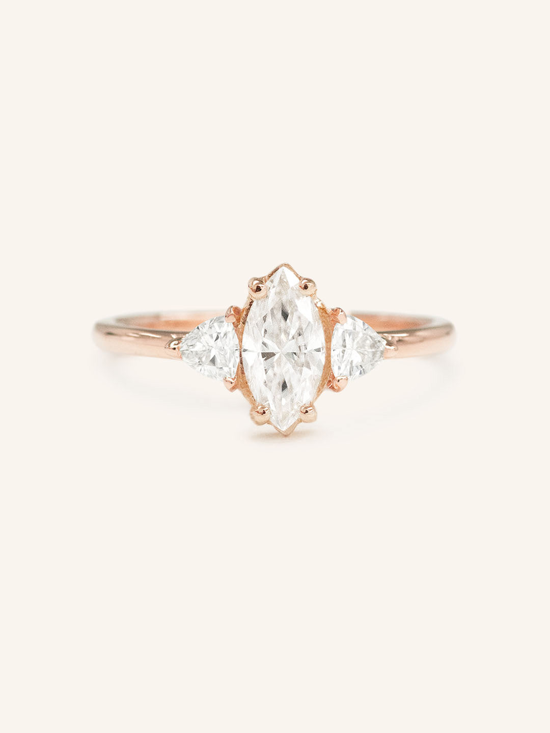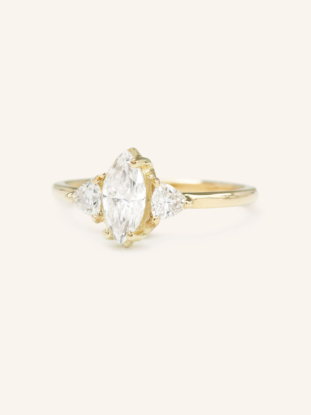 Summer Triangle Marquise Moissanite Three Stone Engagement Ring