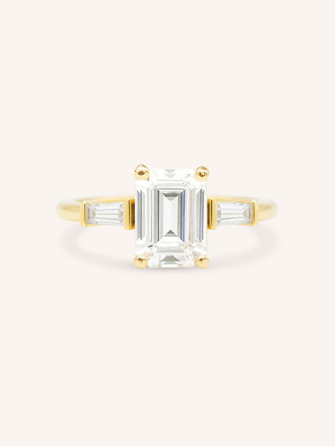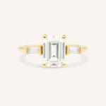 Stately Manor Emerald Cut Moissanite Tapered Baguette Three Stone Engagement Ring