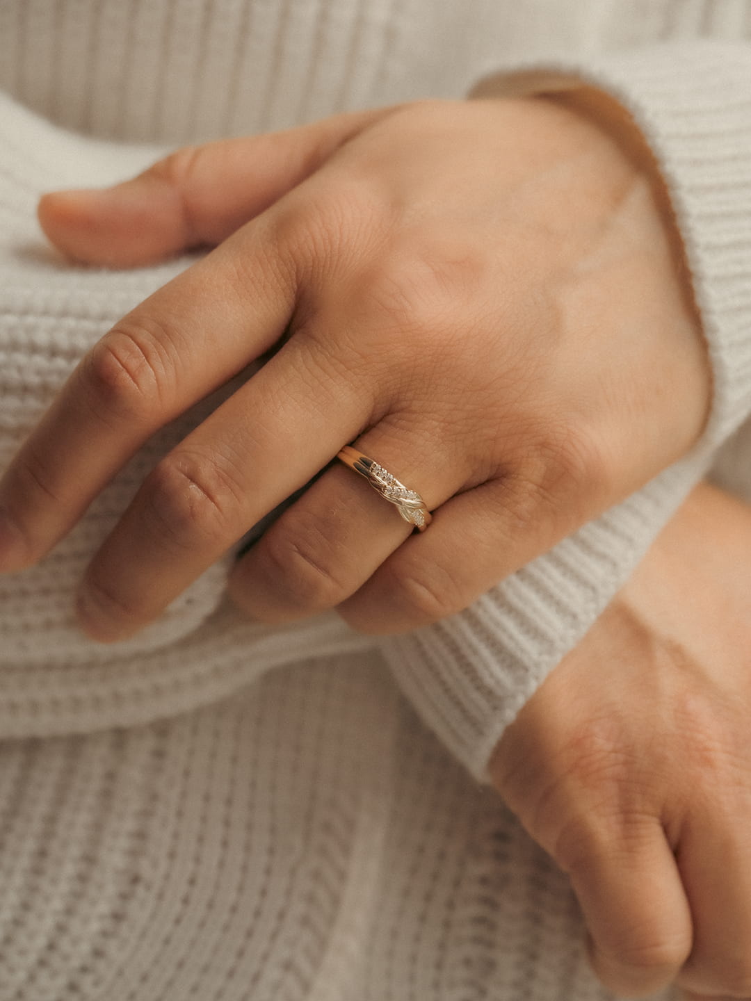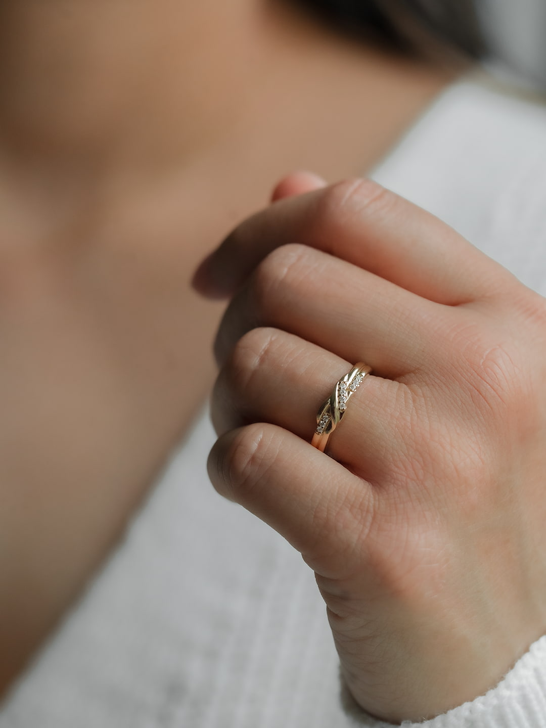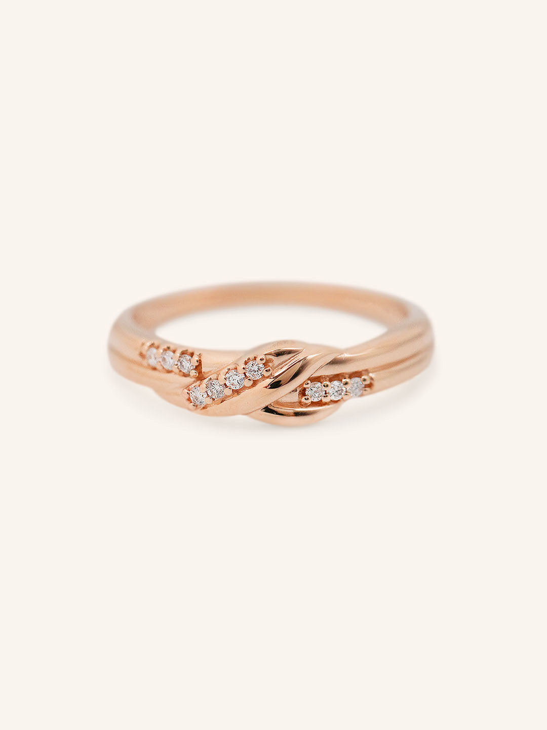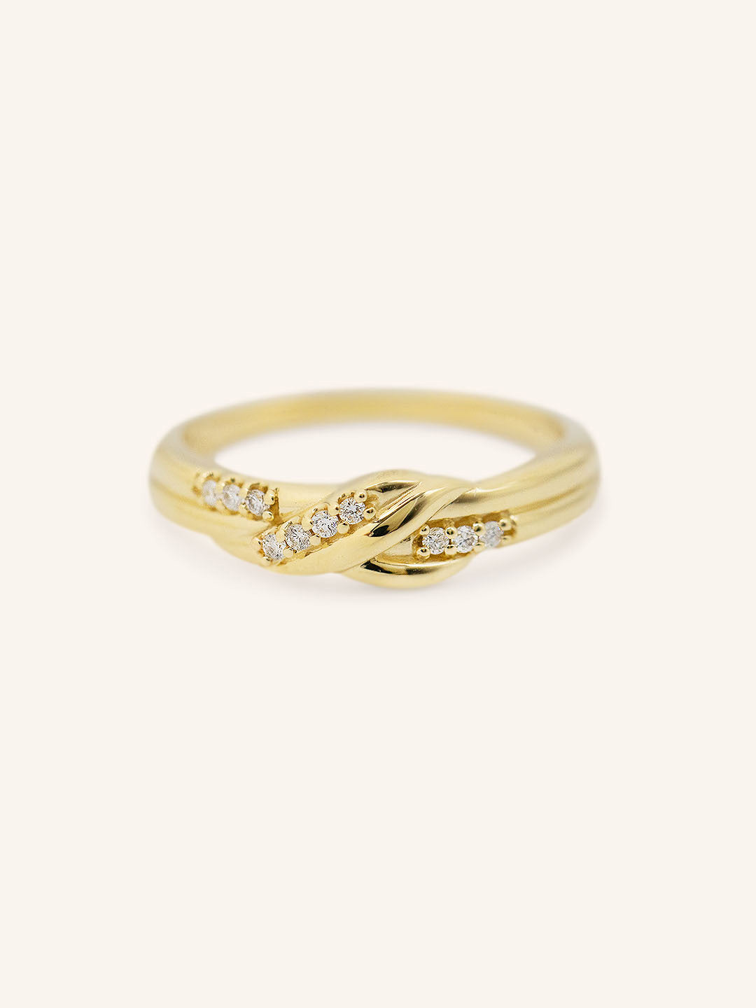 With its stunning diamond knot design, this ring is the perfect accessory for any occasion. Its timeless elegance and eye-catching sparkle will make you feel confident and stylish.