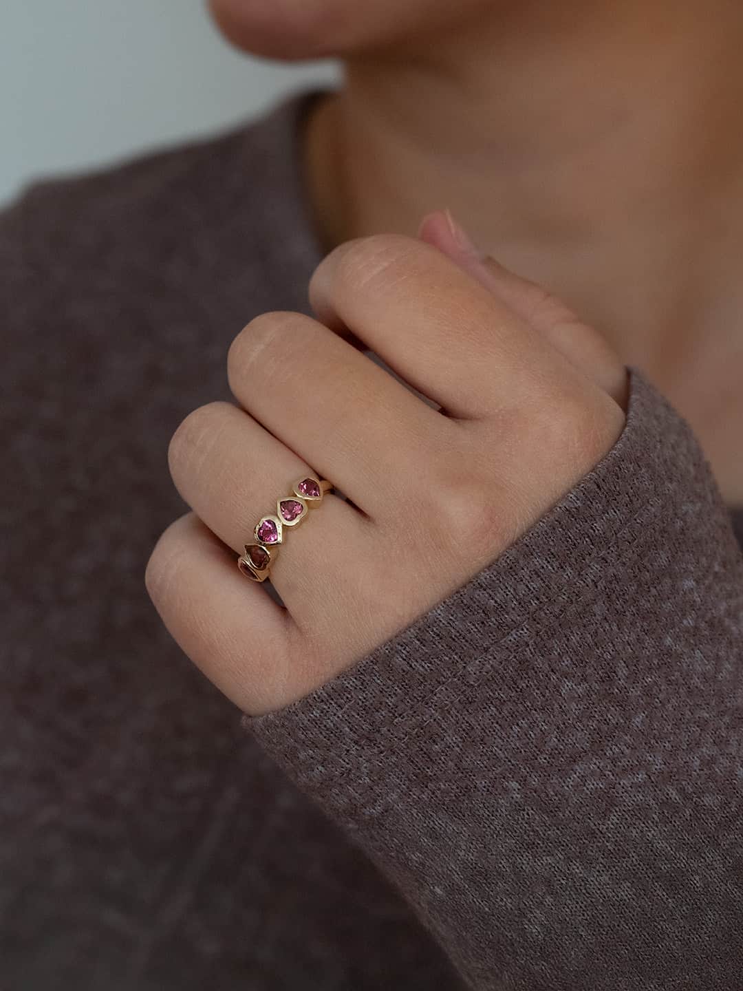 Amara Five-Stone Pink Tourmaline Heart Ring