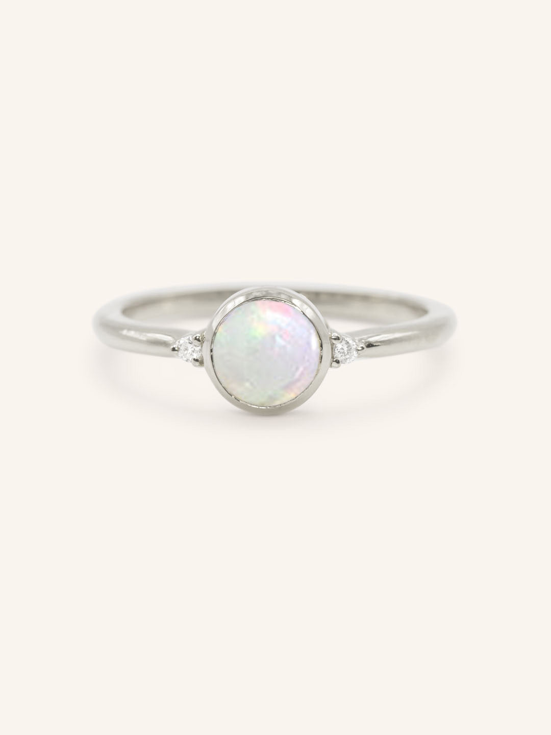 - One (1) Round Cabochon Opal (approx 0.54 ctw / 6.00mm, White color, A Grading)