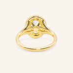 The Emiko Engagement Ring features a stunning oval center stone encircled by a shimmering halo, enhancing its brilliance and presence. A refined split shank band adds graceful structure while drawing the eye toward the centerpiece. Timeless with a modern twist, this design is perfect for those who appreciate a touch of glamour in their everyday elegance.