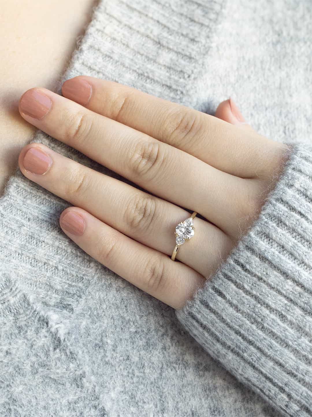 All of our engagement rings feature natural, lab-grown diamonds, and/or moissanites. They are ethically sourced and hand-selected for their quality and brilliance. Each product page specifies the stone type.