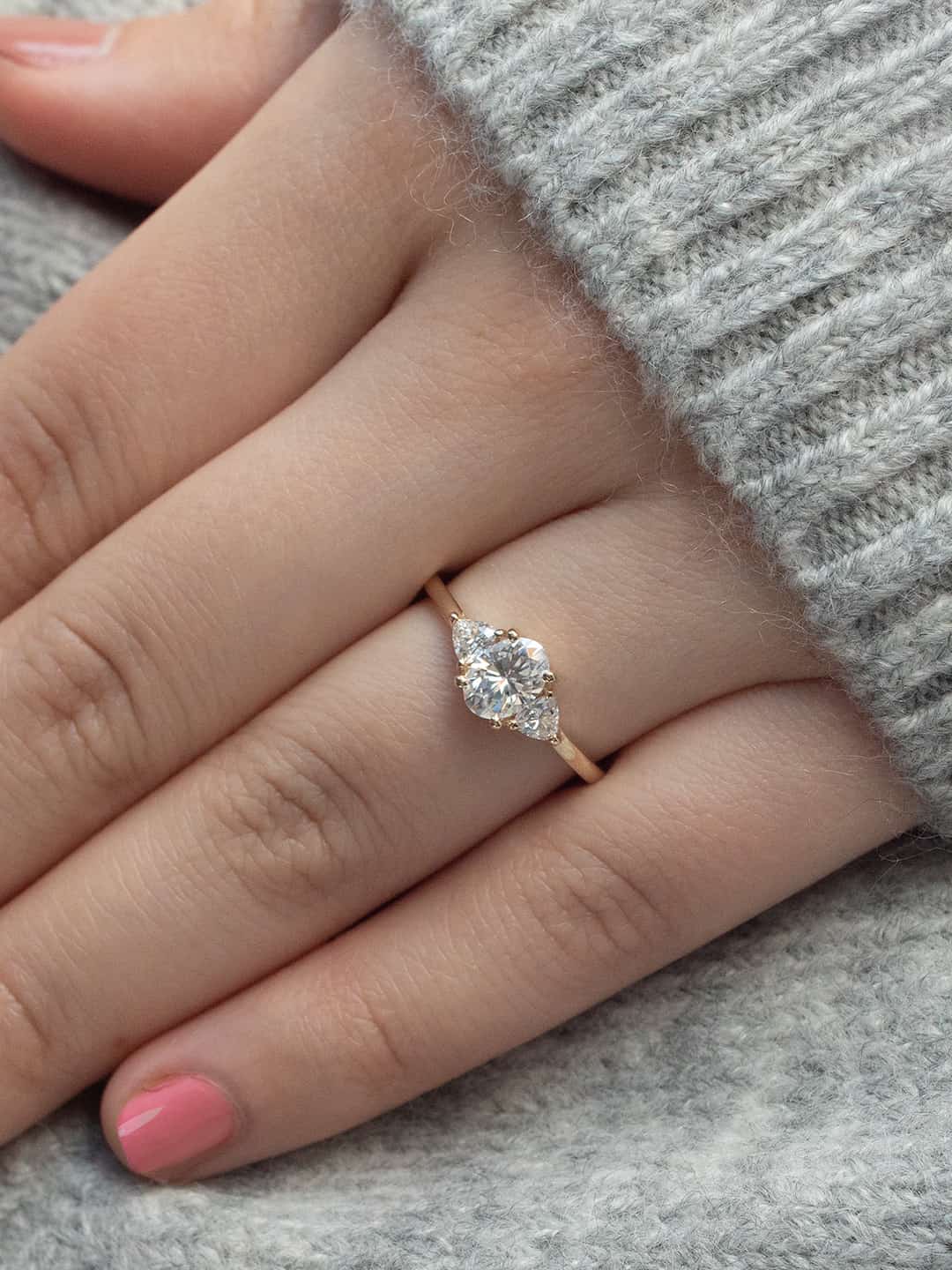 Summer Triangle Oval Moissanite Three Stone Engagement Ring
