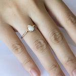 Our Buttonsage Solitaire Ring is set with a delicate, illuminating and magical opal with a beautiful array of colors from pinks to greens, this ring will attract the bees and butterflies trailing behind in a bewitching display of colors.