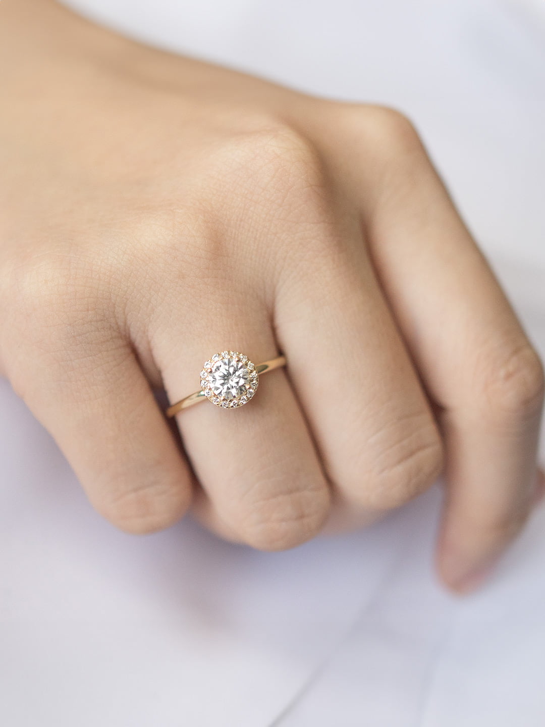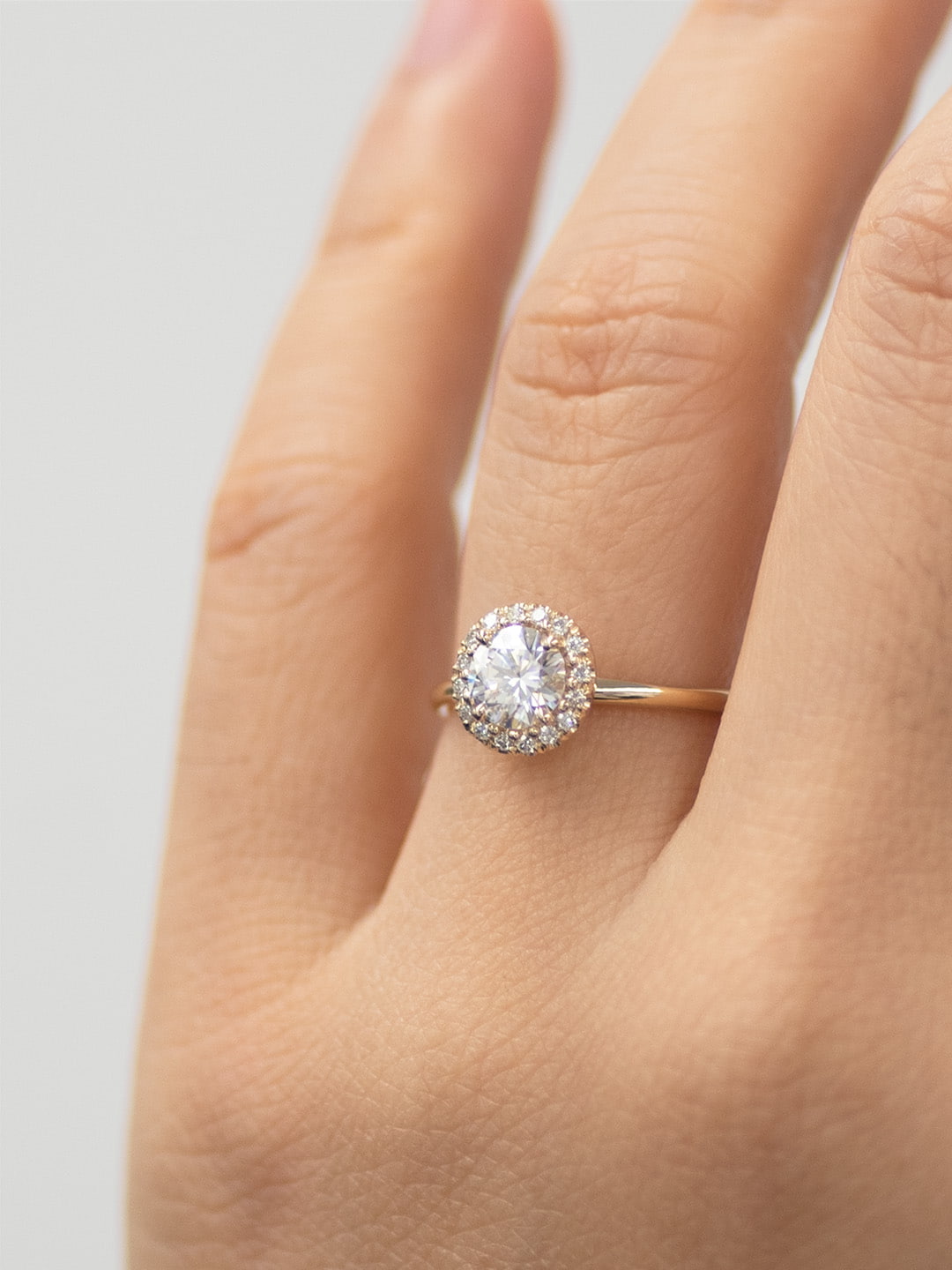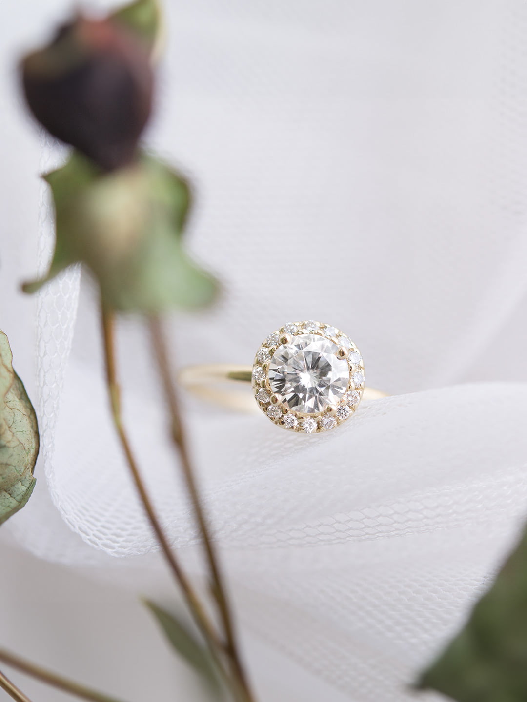 Bridal Rose Round Moissanite Halo Engagement Ring