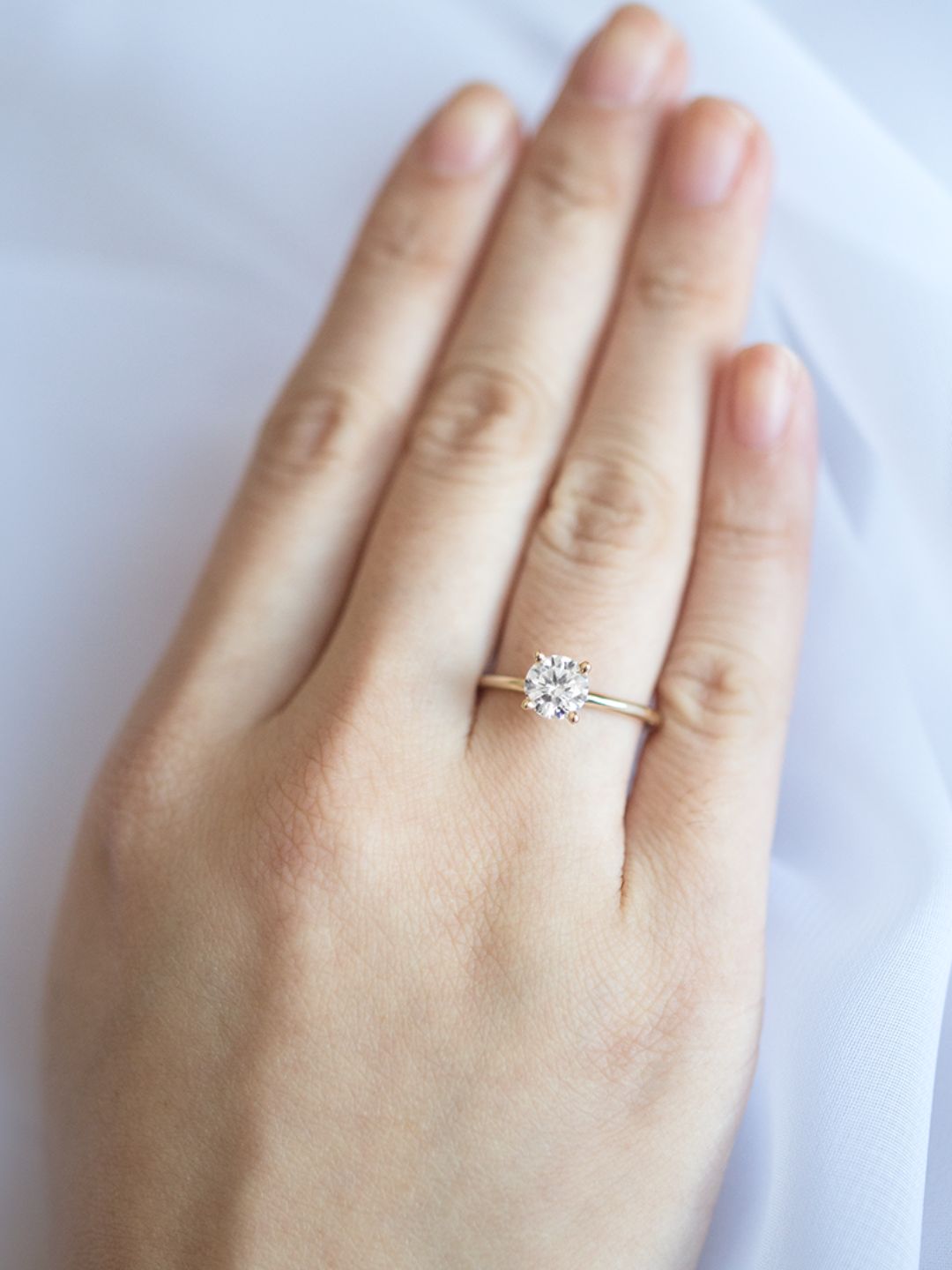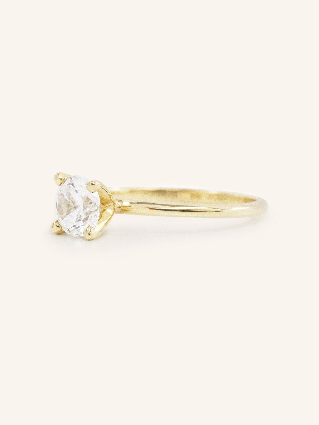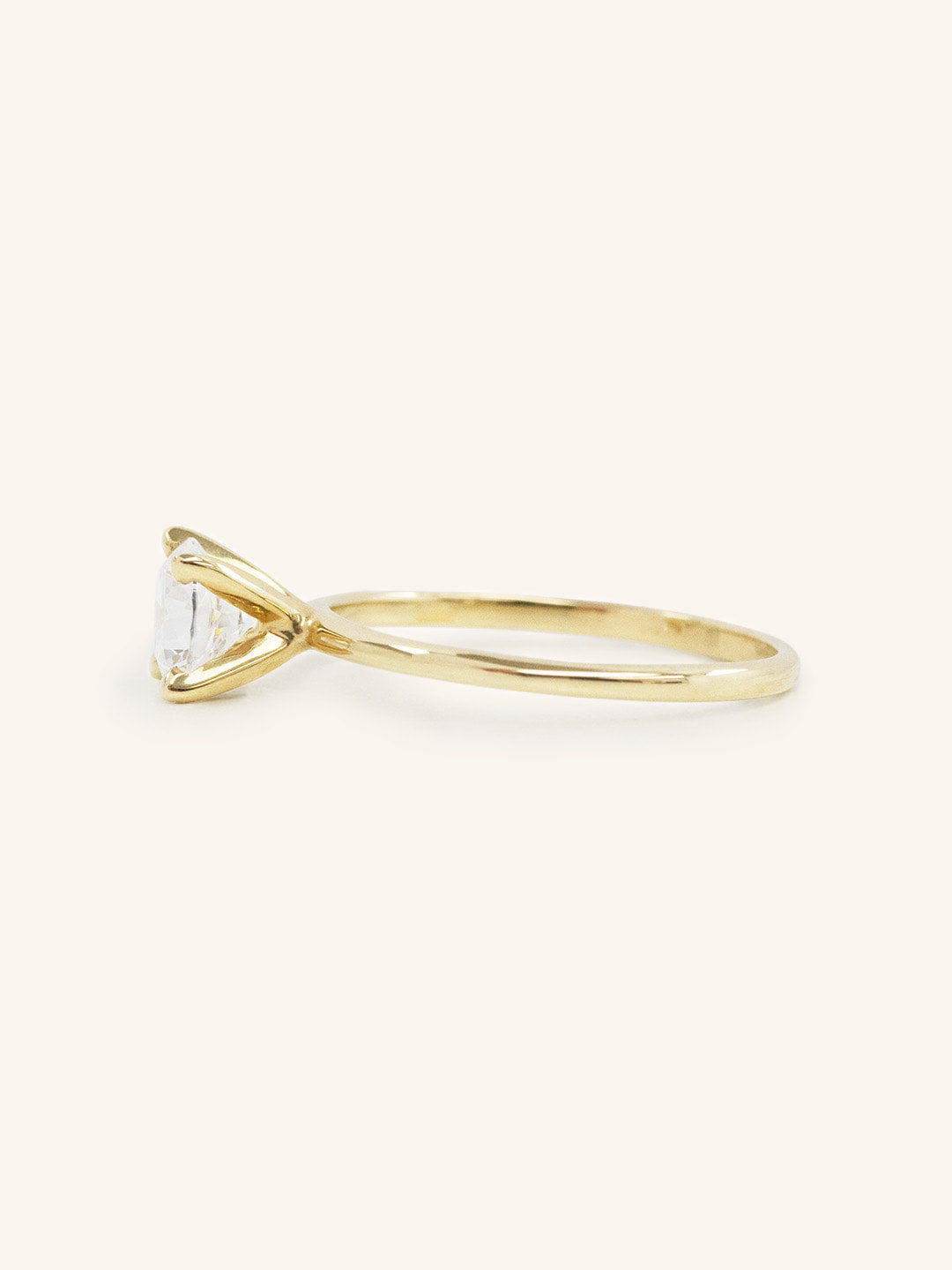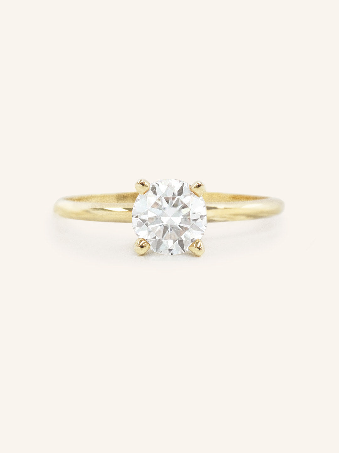The Classical Solo Round Diamond Engagement Ring features a stunning lab-grown diamond set in a minimalist solitaire design. This elegant, timeless ring offers a sustainable yet beautiful choice for those seeking a classic engagement ring. Available in 14k gold, it’s the perfect symbol of love and commitment.