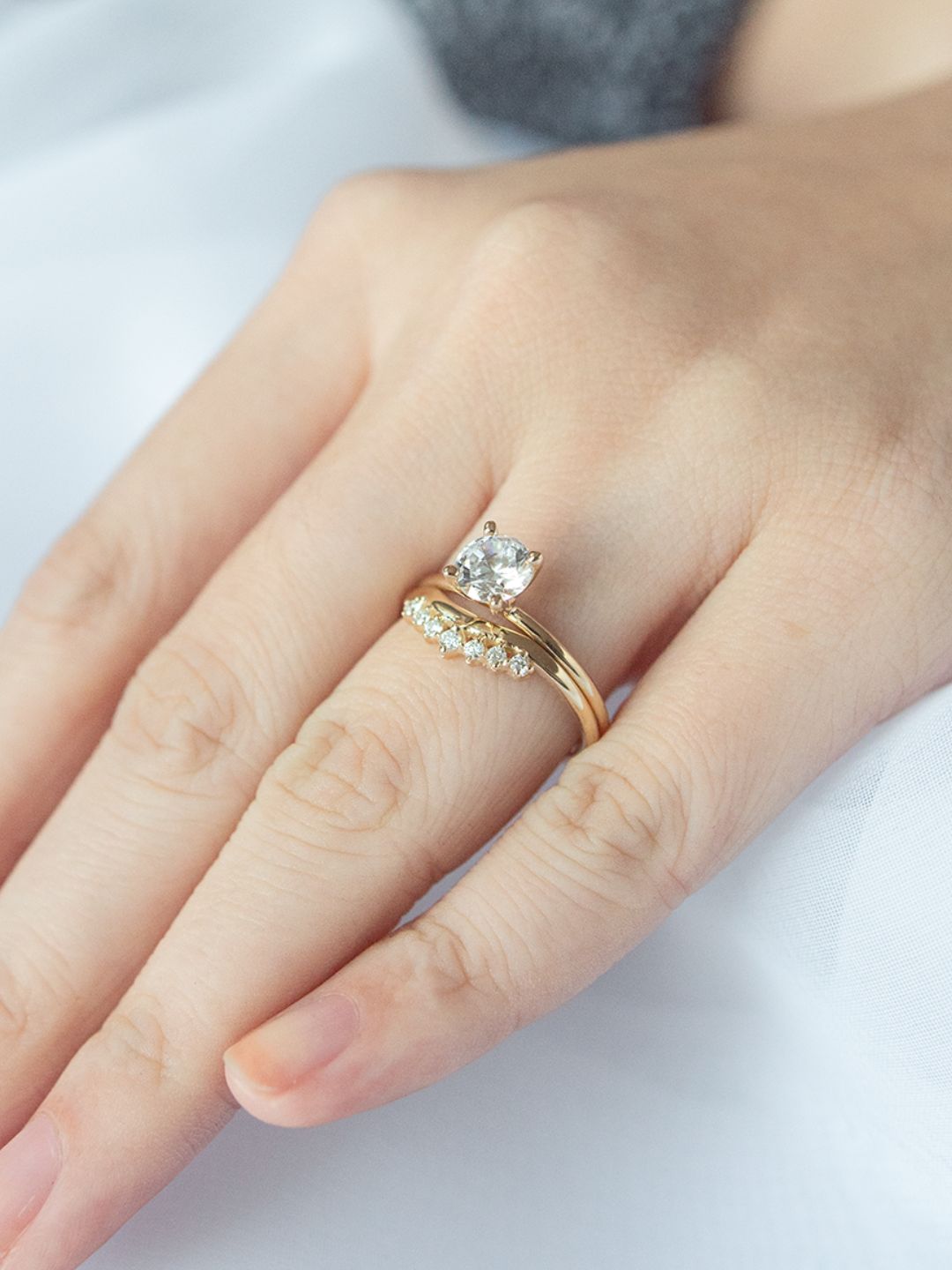 All of our engagement rings feature natural, lab-grown diamonds, and/or moissanites. They are ethically sourced and hand-selected for their quality and brilliance. Each product page specifies the stone type.