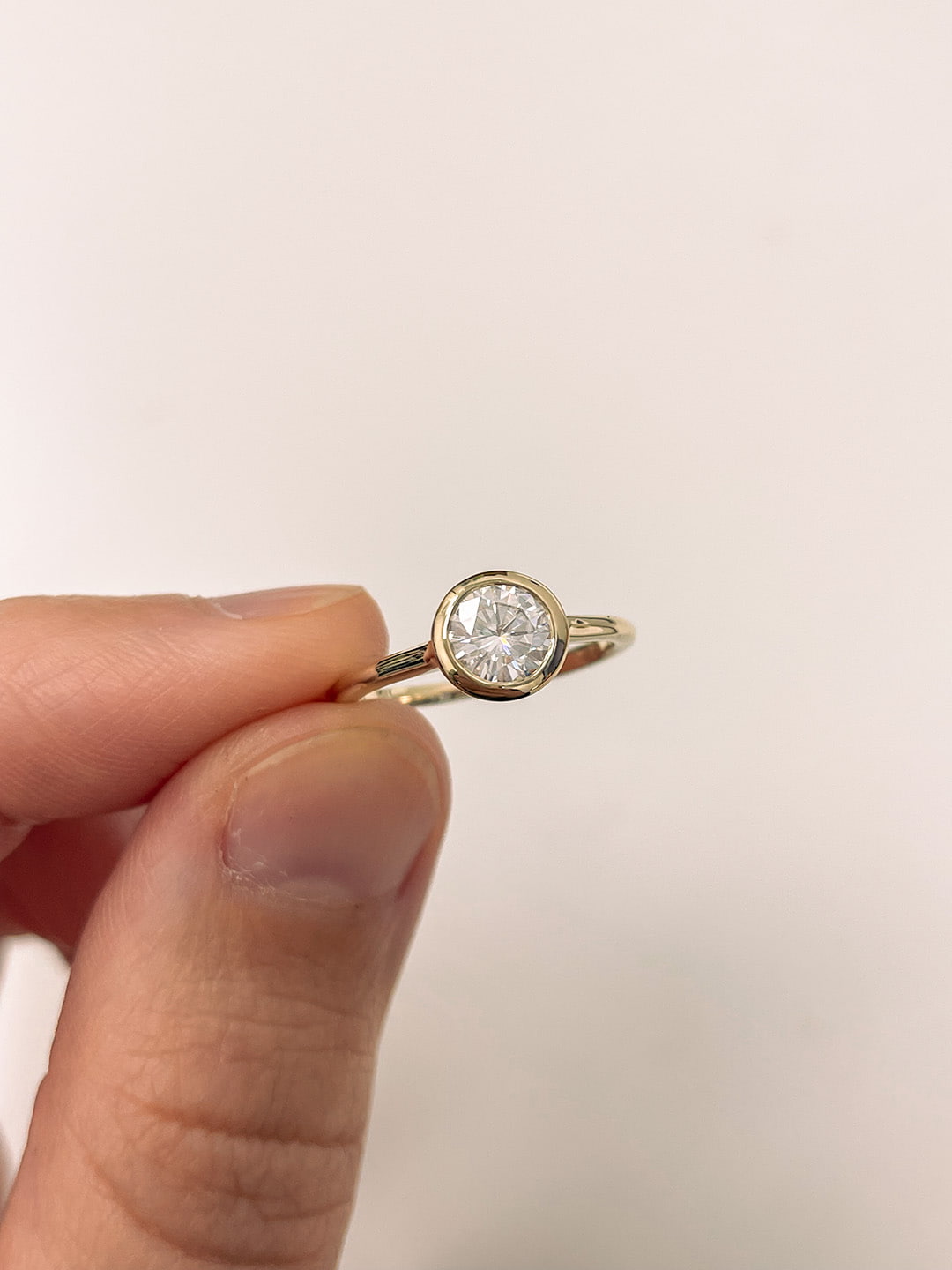 Hidden Bezel Round Moissanite Solitaire Engagement Ring