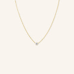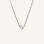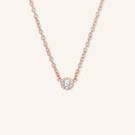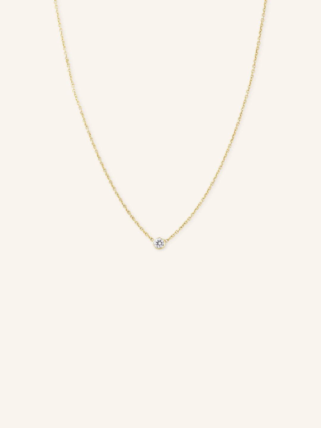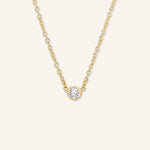 Solid 14k gold one 3.00 mm bezel on a 1.30 mm cable chain necklace with choice of 16" or 18" length (available in yellow, white, or rose gold).